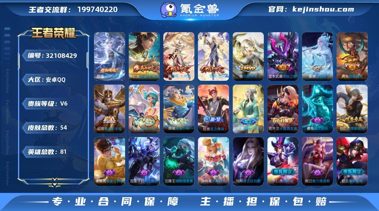 【特价出售】安卓q-V-54皮肤1珍品传说8传说 【珍品传说】 器灵落星盏 【传说】 战鼓燎原 神骥赴朔漠 愿照九州拓 愿照山河定 霜月吟 炽阳神光 黄金射手座 地狱之眼 【热门】器灵浮梦炉 水晶猎龙者 暗隐猎兽者 特工魅影 黄金分割率 幽灵船长 德古拉伯爵 花好人间 东方不败 皇家上将 魅力维加斯 水果甜心 鹰眼统帅 魔术师 81英雄-营地ID:1770260802