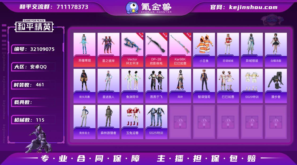 【特价出售】安卓Q-2粉装4特效枪5热门110套装115枪皮 33815热力值 3印记 历史传奇王牌17星 【2粉装】 异瞳寒姬 星之彼岸 【4特效枪】 Kar98K-巳巳如意 (5级) DP-28-豹影疾电 (5级) Mk14-福马献瑞 (4级) Vector-环太平洋 (6级) 【5热门】 小丑鱼 漫步者 破蛋小黄鸡 极速红龙 英勇保护者
