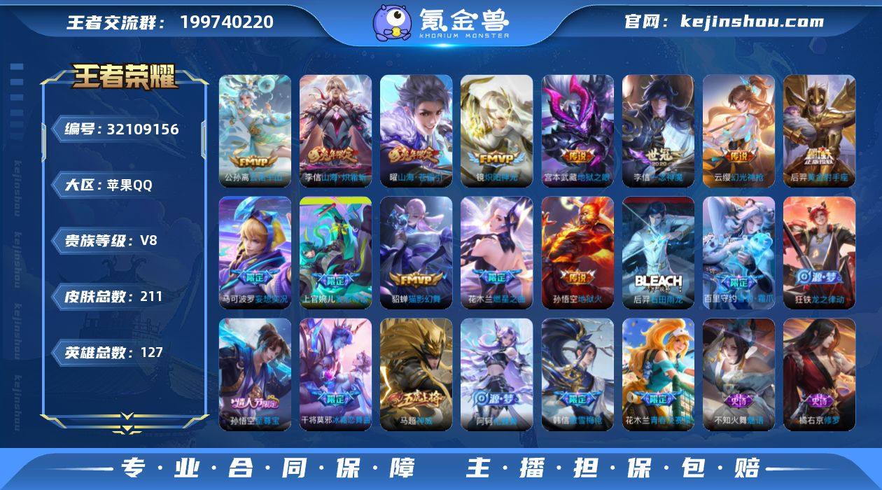 9传说 127英雄 211皮肤 可修改实名 男号 【稀有英雄】敖隐(小龙人),大司命,嬴政(始皇帝),韩信(韩跳跳),夏洛特(夏师傅),艾琳,橘右京(橘子),娜可露露(鸟人),不知火舞,赵云,金蝉(唐僧),戈娅 【珍品传说】酷洛米之心 【传说皮】典韦战鼓燎原,幻光神枪,云诺千山,山海·炽霜斩(李信年限),黄金射手座,地狱火,地狱之眼,末日机甲-孙尚香(绿蚂蚱),一念神魔,猫影幻舞,炽阳神光,超时空战士-狄仁杰,山海·苍雷引(电光曜子),燃星之曲,妄想实况,妄想奇谈 【珍宝阁皮】胡桃夹子 【赛季/战令皮】古海寻踪(s33),海盐诗旅(s30),擒涛扼浪(s31),探海日志(s32),天穹祈灯(s34),狰(s8),饕餮(s9),烛龙(s10),重明(s11),穷奇(s12),御狮(s13),御霄(s14),御旌(s15),御銮(s16),朔风刀(s17),混沌棋(s18),疑决卦(s19),醍醐杖(s20),原初探秘者(s21),万华元夜(s22),演武夺筹(s23),驱傩正仪(s24),猎兽之王,白昼王子,神迹守卫-钟馗,狮舞东方,单词大作战,狂想玩偶喵,潮玩骑士王,云间偶戏,沙漠行僧(s26),金庭之子(s27),大漠名商(s28),云中旅人(s29) 【史诗皮】星界特工,化蝶舞,龙之律动,雪豹·霜爪,石田雨龙,紫霞仙子,苍穹之光,黄金分割率,特工魅影,千年之狐,江河有灵,末日机甲-莱西奥,匿光侦查者,无限星赏官,魅语,时之恋人-孙尚香,乱世虎臣,节奏热浪,修罗,水果甜心,星夜王子,功夫厨神,德古拉伯爵,暗隐猎兽者,幽灵船长,地狱岩魂,纤云弄巧,繁星吟游(呼啦呼啦),缤纷独角兽,逐浪之夏,水晶猎龙者,曙光守护者,鹰眼统帅,魅力维加斯 【限定皮】至尊宝,凤求凰(白切鸡),傲雪梅枪,时之彼端,时雨天司(水龙头),神威(电光马子),五谷丰年,游园惊梦,梁祝,御风骁将(吕布年限),李小龙,青春决赛季,冰霜恋舞曲,百木心枪,山海·玄木吟(马可年限) 【普通皮】谧流熔炉,玫蓝誓约,街头霸王,景韶洛都,浪漫序章,虚灵犬护,春野闲踪,秘证寻踪