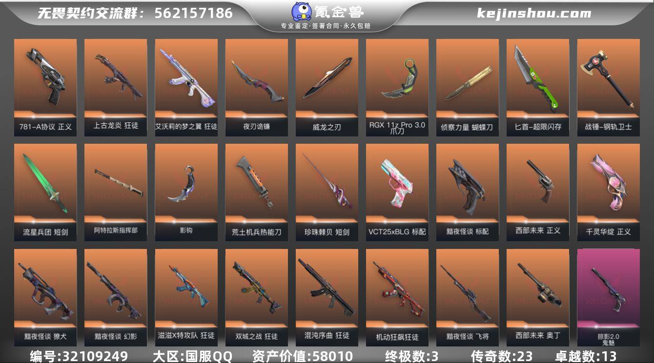 YY -仓库价值58010,剩余R点45,剩余点券34 英雄27 ,未定级(历史超凡II) 【3狂徒1幻影毕业皮,多热门主战皮肤,极品未定级入坑皮肤号】 套装:(掠影//2.0,黯夜怪谈,耀鳞威龙) 热门皮肤:(盖亚狂徒,侦查幻影,混沌狂徒,猫猫狂徒,显卡爪刀,千灵正义,西部正义,掠影狂徒,侦查蝴蝶刀,起源冥驹,机动狂徒,西部奥丁,神中神罚莽侠,盖亚戍卫,掠影冥驹,龙炎狂徒,双城狂徒,781正义,滋滋狂徒等) 其他皮肤/卡面/挂饰等请看截图,限时道具/段位等以实际验号为准,如账号因没有维护、赛季更新等不可抗因素发生变化,不属于账号质量问题