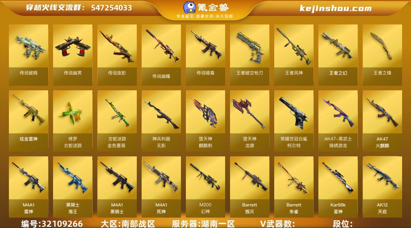 MLY756251 MLY丨可排位丨湖南一区丨84vip6-4王者1炫金丨6传说幻神三件套幻神5皮G36C-幻影丨6烈+加特林-炼狱,6烈龙+斯泰尔-蝴蝶+死亡之眼丨传说夜影,传说暗裔,传说幽瞳,传说破晓,传说幽冥,传说影煞丨M200-幻神+音效卡+荣耀世冠白鲨+星耀+纸灯笼+冠军之幻+周瑜Barrett丨王者之幻,王者风神,王者破空枪刃,王者之锋丨毁灭,AWM-裁决,Barrett-朱雀,Kar98K-星神,M200-竞技荣光丨毁灭+暗月+战神张飞+耀金+音效卡丨火麒麟,雷神,黑骑士,死神,天启,超新星,HK417-朱雀,Scar-白虎,M14EBR-玄武,无影-神兵利器,黑武士-锦绣游龙,金色蔷薇-古蛇迷踪,机械迷城-穹宇,QBZ-金色蔷薇,黑骑士-海王,M4A1-赤狱骑士丨沙鹰-修罗,COP堕天神,柯尔特-荣耀世冠白鲨2023,修罗-古蛇迷踪,破空枪刃丨屠龙,龙啸,擎天,麒麟刺,麒麟刺-堕天神,龙啸-堕天神,幻灵之峰,擎天-竞技荣光丨手雷:幻灵套,堕天神套丨司雨,蛇隐宗丨神圣爆裂者,试炼破坏者,征服者,机甲撕裂者,激光毁灭者,末日审判者lll丨HK417-朱雀-蛇隐宗丨炫金雷神丨A背包套装-拓展券,永久AC套+C4+手雷包,超级护目镜,超级对讲机,超级背包丨其他皮肤:雷神-高能霹雳,雷神-白鲨-CFPLS14冠军,雷神-冠军之魄,雷神-星空,雷神-暗月,雷神耀金,雷神-R.LGD-CFPLS18冠军,雷神-HeartShot,火麒麟-CFSTAR,黑骑士-冠军之势,黑龙-暗月,黑龙-能量核心