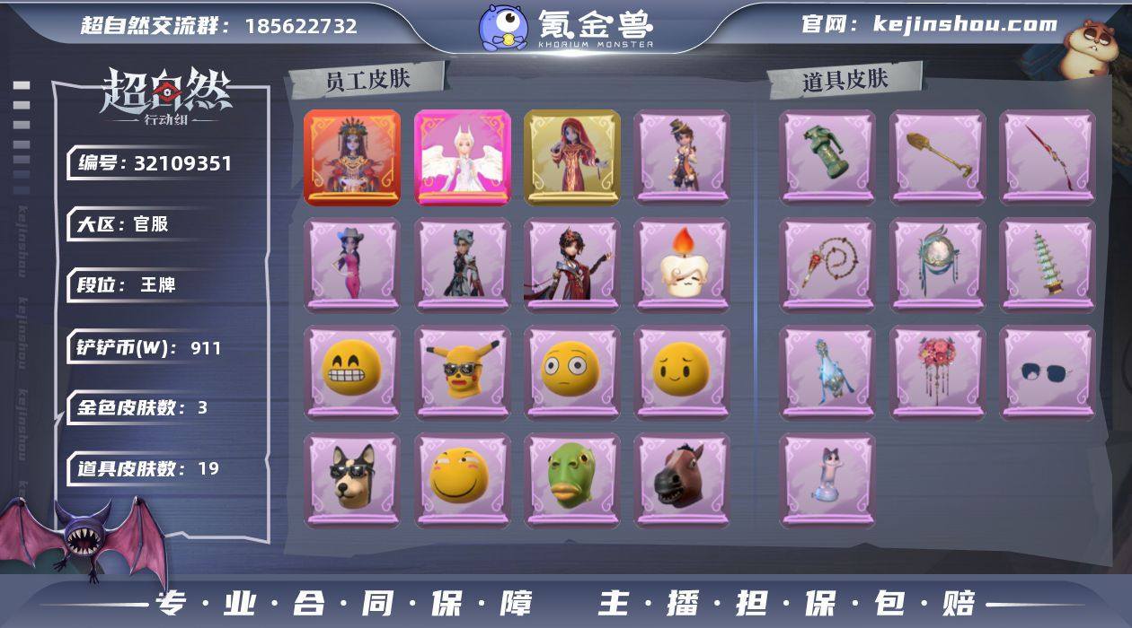 【Hcz553】【特价秒杀】:红皮1,粉皮1,金皮3,紫皮4,道具19,累充2186元,金砖36,(炽天使,镜生遗梦,剑仙,镜花辞,海月息潮) 皮肤:小黄-炽天使,巫铃儿-镜生遗梦,逍遥-剑仙,巫铃儿-镜花辞,薇薇安-海月息潮,薇薇安-仙锋小姐,艾伦-黎明猎手,阿念-庆宴绮愿,爱丽丝-耀眼的你;道具:长枪-波塞冬,额外的背包-飞花令,桃木剑-凤鸣九天,黄牛能量饮料-青玉抱丹,音响-happy猫,夜视仪-金丝眼镜,葫芦-伏妖塔,葫芦-海心凝珠,腰包-红运福虎,音响-月光奏鸣曲,铲子-龙鳞,传送按钮-昆仑镜,除颤仪-冰晶般的代价,黄牛能量饮料-无人岸,闪光弹-金戈玄铜,电击枪-权杖的许诺,摸金符-海洋之心,长鞭-缚誓之锁,长鞭-新春炸响;美妆:美妆-听潮祝福;饰品:头饰-萨卡班甲鱼头套,头饰-马上有钱,头饰-呆滞头套,头饰-饺饺者头套,头饰-烈焰红唇头套,头饰-嘻嘻头套,头饰-滑稽头套,头饰-鱼头怪头套,头饰-哈士奇头套,头饰-烛光纪念,头饰-卑微头套,头饰-面具马头套,头饰-蒜了八,头饰-像素朋克墨镜,头饰-后室幸存者头套,挂饰-钗头凤,挂饰-孤独对望,挂饰-尘封旧事,背饰-蝶恋花,背饰-牛啤背包,背饰-夜浮船,背饰-白鼬趴趴;主页装扮:主页装扮-聚宝龙龛,主页装扮-虚镜回廊;动作:动作-新年摇,动作-鸳鸯戏,动作-鹏友摇,动作-舞台中心,动作-打车摇,动作-蝴蝶步,动作-拜年,动作-举牌,动作-抬手;工牌背景:工牌背景-珊瑚海,工牌背景-卷珠帘;工牌动作:工牌动作-春色盈怀;员工:艾伦,员工-爱丽丝,员工-零,员工-巫铃儿,员工-薇薇安,员工-莉莉,员工-兰,员工-小黄,员工-逍遥;累充2186元;铲铲币91.1万;金砖36;段位:王牌Ⅳ;魔盒等级:1