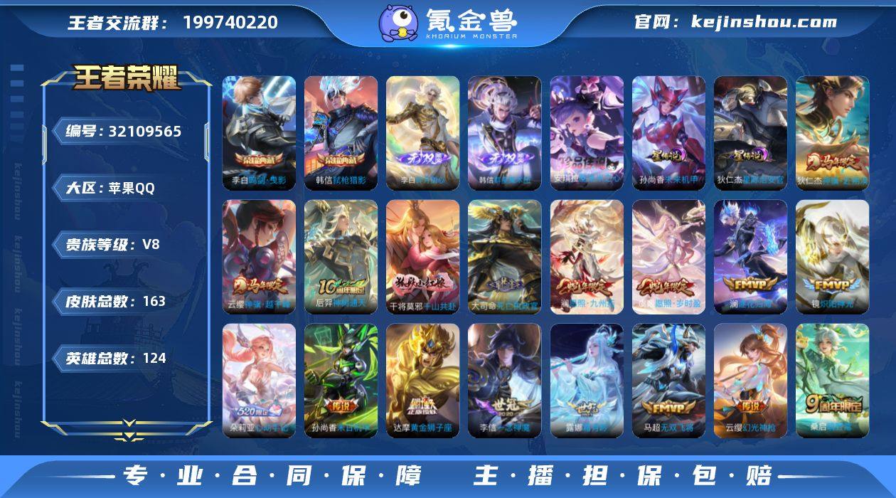 H-VM4130 苹果QQ V8 163皮 2典藏2无双1珍品传说【巅峰1605 打野35段】2星元61限定22传说 金标娜可露露/李白/鬼谷子/橘右京/澜 18按键 2207星币 125英雄碎片 4荣耀印记 营地号:1640084812 【珍品传说】酷洛米之心, 【无 双】韩信群星魔术团,碎月剑心, 【荣耀典藏】鸣剑·曳影,弑枪猎影, 【星元皮肤】未来机甲,星际治安官, 【热门限定】神骥·赴朔漠,神骥·越千峰,愿照·岁时盈,愿照·九州拓,器灵·浮梦炉,逐花归海,至尊宝,启明星使,巫礼祀神,千山共赴,涂山容容,幻珠鲛人, 【限定传说】一念神魔,修罗,无双飞将,未来纪元,炽阳神光,绛天战甲,黄金狮子座,黄金白羊座,天秀·启明,超时空战士,晚萤,滕王阁序,末日机甲男,末日机甲女,原初追逐者,暗隐猎兽者,霜月吟,朵莉亚心动手记,地狱岩魂,幻光神枪,圣诞恋歌,功夫厨神,幽灵船长,乘风破浪,圣诞狂欢,星夜王子,赏金猎手,节奏热浪,街头霸王,箭羽风息,乐园奇幻夜,鬼剑武藏,云间偶戏,冰冠公主,东方不败,拳王,女仆咖啡,丁香结,重装意志,炽阳神光,赏金猎手,诗剑行,幻珠鲛人,