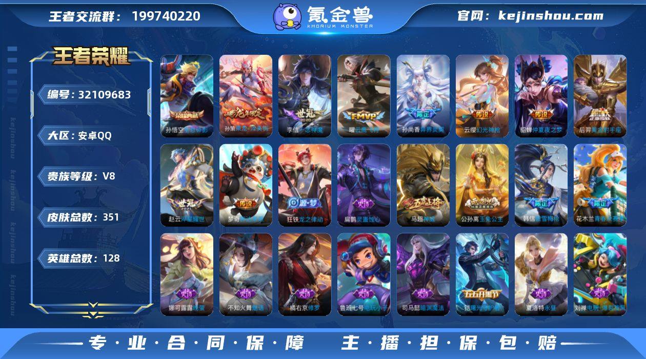 V8 1典藏 19传说 128英雄 351皮肤 可修改实名 男号 【英雄全皮】敖隐全皮,影全皮,大禹全皮 【稀有英雄】敖隐(小龙人),大司命,嬴政(始皇帝),韩信(韩跳跳),夏洛特(夏师傅),艾琳,橘右京(橘子),娜可露露(鸟人),不知火舞,赵云,金蝉(唐僧),戈娅 【荣耀水晶】全息碎影(猴子典藏) 【传说皮】乘龙·淬吴钩(孙策年限),幻光神枪,黄金射手座,仲夏夜之梦(大飞蛾),末日机甲-孙尚香(绿蚂蚱),一念神魔,淬星耀世,云鹰飞将(小将军),胖达荣荣,时之恋人-刘备(电焊工),超时空战士-狄仁杰,末日机甲-孙策 【珍宝阁皮】锁墨魂,优雅恋人,蔷薇恋人,女武神 【赛季/战令皮】噬灭天穹(s37),古海寻踪(s33),星界游侠,海盐诗旅(s30),擒涛扼浪(s31),探海日志(s32),流音漫舞,顽趣-梦奇,地狱燃心,剑破天穹(s35),天穹祈灯(s34),天穹之誓(s36),暖冬·兔眠,御旌(s15),混沌棋(s18),疑决卦(s19),醍醐杖(s20),原初探秘者(s21),万华元夜(s22),演武夺筹(s23),驱傩正仪(s24),千军破阵(s25),单词大作战,狂想玩偶喵,潮玩骑士王,云间偶戏,星际陆战队-达摩,胡桃异想国,神迹守卫-墨子,航海奇遇记,圣弓游侠,真爱魔法,火炮绅士,沙漠行僧(s26),幻夜卜梦,吟游魔法,夜都怪侠,金庭之子(s27),电玩高手(电玩铁子),午后时光,大漠名商(s28),...