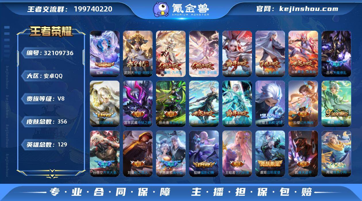 【Bwz481】【精品射手号】安卓Q-V8-可二次-23段发育路-省标伽罗-多市标-129英雄-356皮肤-1典藏皮肤-1典藏英雄-1无双-21传说-106史诗(乘龙铭钟鼎、乘龙淬吴钩、天魔缭乱) 【英雄全皮】:敖隐全皮,影全皮 【荣耀典藏】:武则天英雄,貂蝉幻阙歌 【无双皮肤】:武则天神器明辉仪 【传说皮肤】:澜愿照九州拓,虞姬愿照岁时盈,云缨幻光神枪,桑启鸣野蒿,孙策乘龙淬吴钩,赵云乘龙铭钟鼎,干将莫邪画中仙,孙悟空齐天大圣,王昭君乞巧织情,兰陵王默契交锋,公孙离祈雪灵祝,诸葛亮时雨天司,铠绛天战甲,镜炽阳神光,虞姬启明星使,刘备时之恋人,貂蝉猫影幻舞,李白凤求凰,孙尚香末日机甲,宫本武藏地狱之眼,吕布天魔缭乱 【限定皮肤】:白起狰,姜子牙天穹之誓,狄仁杰阴阳师,虞姬凯尔特女王,赵云皇家上将,赵云引擎之心,墨子神迹守卫,嬴政优雅恋人,嬴政白昼王子,孙尚香蔷薇恋人,庄周高山流水,高渐离死亡摇滚,钟无艳超时空战士,孙膑天狼运算者,扁鹊炼金王,扁鹊奇幻香踪,芈月重明,芈月白晶晶,吕布天魔缭乱,吕布猎兽之王,元歌无心,夏侯惇朔风刀,甄姬游园惊梦,甄姬落雪兰心,曹操烛龙,典韦穷奇,马可波罗逐梦之星,马可波罗暗影游猎,马可波罗山海玄木吟,狄仁杰魔术师,狄仁杰万华元夜,达摩星际陆战队,达摩沙漠行僧,项羽海滩派对,老夫子醍醐杖,老夫子航海奇遇记,关羽冰锋战神,关羽百相守梦,程咬金演武夺筹,韩信逐梦之影,韩信飞衡,王昭君凤凰于飞,兰陵王默契交锋,花木兰默契交锋,亚瑟潮玩骑士王,孙悟空至尊宝,孙悟空齐天大圣,牛魔御旌,后羿如梦令,李元芳银河之约,李元芳云中旅人,虞姬霸王别姬,虞姬启明星使,钟馗驱傩正仪,杨玉环遇见飞天,杨戬潮玩骑兵,干将莫邪冰霜恋舞曲,干将莫邪画中仙,雅典娜单词大作战,雅典娜黎明之约,蔡文姬繁星吟游,太乙真人饕餮,太...