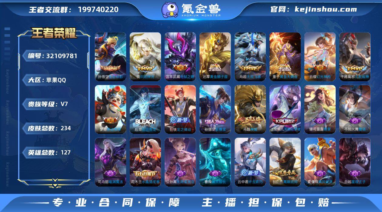 传说 13传说 127英雄 234皮肤 可修改实名 男号 【英雄全皮】影全皮,大禹全皮 【稀有英雄】大司命,嬴政(始皇帝),韩信(韩跳跳),夏洛特(夏师傅),艾琳,橘右京(橘子),娜可露露(鸟人),不知火舞,赵云,金蝉(唐僧),戈娅 【荣耀水晶】九霄神辉(木兰典藏),全息碎影(猴子典藏) 【珍品传说】怪盗基德,器灵·落星盏 【传说皮】朵莉亚心动手记,黄金天蝎座,幻光神枪,黄金狮子座,地狱之眼,末日机甲-孙尚香(绿蚂蚱),久胜战神,炽阳神光,无双飞将,胖达荣荣 【珍宝阁皮】女武神,玩趣恶龙 【赛季/战令皮】噬灭天穹(s37),古海寻踪(s33),星界游侠,海盐诗旅(s30),擒涛扼浪(s31),潮玩骑兵,探海日志(s32),流音漫舞,顽趣-梦奇,地狱燃心,剑破天穹(s35),天穹祈灯(s34),青焰无极,苍威无极,天穹之誓(s36),暖冬·兔眠,御霄(s14),御旌(s15),御銮(s16),朔风刀(s17),混沌棋(s18),疑决卦(s19),醍醐杖(s20),原初探秘者(s21),万华元夜(s22),驱傩正仪(s24),千军破阵(s25),朔望之晖,蓝屏警告,狮舞东方,星空之诺,银河之约,夺宝奇兵,迷踪丽影,西部大镖客-猪八戒,航海奇遇记,圣弓游侠,真爱魔法,沙漠行僧(s26),金庭之子(s27),大漠名商(s28),云中旅人(s29) 【史诗皮】星界战将,蔬乡物语(鲁班七号),线条小狗-周瑜,龙之律动,石田雨龙,百相守梦-黄忠,紫霞仙子,黄金分割率,江河有灵,蒙恬荣光圣徽,高渐离燃音魔法,无限星赏官,偶像歌手,晚萤,魅语,末日机甲-吕布,乱世虎臣,节奏热浪,摇滚巨星,水果甜心,天才门将,星夜王子,时之奇旅-安琪拉,德古拉伯爵,暗隐猎兽者,幽灵船长,鬼剑武藏,暗渊魔法,心灵战警,纤云弄巧,缤纷独角兽,乘风破浪,月团寄思,水晶猎龙者,箭羽风息,金属风暴,原初追逐者,鹰眼统帅,魅力维加斯,赏金猎手,滕王阁序,无心 【限定皮】鸣野蒿,至尊宝,武陵仙君(小桃花),神威(电光马子),飞衡(韩信年限),诗剑行,五谷丰年,梁祝,天狼狩猎者,