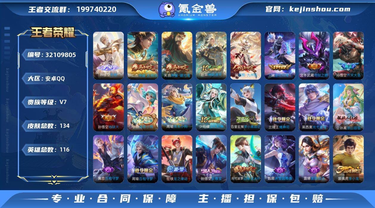 【Bwz484】【悟空小号】:安卓Q-V7-可二次-15个性按键-6个猴子皮肤-116英雄-134皮肤-1无双-8传说-35史诗(神骥镇沧海,神骥赴朔漠,愿照九州拓,逐花归海) 【英雄全皮】:孙权全皮,敖隐全皮 【无双皮肤】:孙悟空无相 【传说皮肤】:关羽神骥镇沧海,狄仁杰神骥赴朔漠,后羿神树通天,澜愿照九州拓,澜逐花归海,孙悟空齐天大圣,宫本武藏地狱之眼,孙悟空地狱火 【限定皮肤】:狄仁杰阴阳师,赵云皇家上将,元歌无心,马可波罗山海玄木吟,狄仁杰魔术师,项羽海滩派对,孙悟空至尊宝,孙悟空齐天大圣,李元芳云中旅人,沈梦溪大漠名商,裴擒虎李小龙,裴擒虎擒涛扼浪,鲁班大师探海日志,桑启海盐诗旅,艾琳女武神 【年限皮肤】:马可波罗山海玄木吟,澜愿照九州拓 【赛季限定】:沈梦溪大漠名商,李元芳云中旅人,桑启海盐诗旅,裴擒虎擒涛扼浪,鲁班大师探海日志,钟馗虚灵犬护,甄姬逆浪荇歌,亚瑟荣光之誓 【战令限定】:孙悟空神迹守卫,周瑜百相守梦,孙策百相守梦,兰陵王傩神司,莱西奥光弋星穹,明世隐往忆晖光,周瑜线条小狗,小乔线条小狗 【史诗皮肤】:周瑜线条小狗,小乔线条小狗,少司缘巫礼祀神,百里玄策罗小黑战记,兰陵王傩神司,莱西奥光弋星穹,公孙离涂山容容,黄忠百相守梦,周瑜百相守梦,狂铁龙之律动,百里守约真我赫兹,刘禅电玩爆裂旋风,马可波罗山海玄木吟,元歌无心,百里玄策热力回旋,裴擒虎李小龙,狄仁杰鹰眼统帅,孙策猫狗日记,李元芳逐浪之夏,铠曙光守护者,夏侯惇乘风破浪,花木兰水晶猎龙者,孙悟空至尊宝,张飞乱世虎臣,吕布末日机甲,曹操幽灵船长,妲己魅力维加斯,嬴政摇滚巨星,嬴政暗夜贵公子,孙尚香水果甜心,宫本武藏鬼剑武藏,廉颇地狱岩魂,狄仁杰魔术师,甄姬冰雪圆舞曲,赵云皇家上将,露娜紫霞仙子 【其他皮肤】:吕布舞狮寰,鲁班七号班班快跑,妲己...