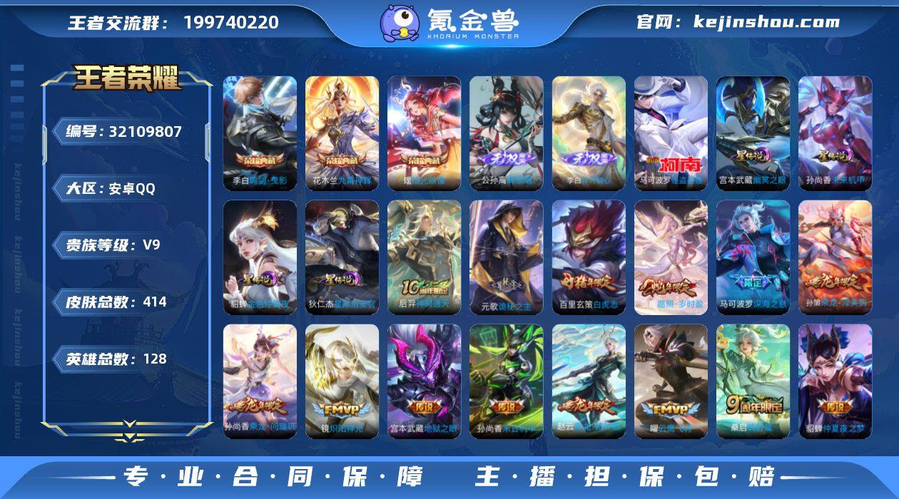 C-UC10793 安卓QQ V9 414皮 3典藏4星元 2无双1珍品传说24传说137限定 16按键 2天幕 巅峰1515 打野49段 发育路30段 全能高手 1w战力金标韩信 金标阿古朵/大司命/暃 2296星币 292英雄碎片 290亲密玫瑰 217皮肤碎片 21印记 5荣耀印记 营地号:1830061268【荣耀典藏】九霄神辉,鸣剑·曳影,拾光映像, 【星元皮肤】金色仲夏夜,幽冥之眼,未来机甲,星际治安官, 【热门限定】愿照·岁时盈,器灵·浮梦炉,至尊宝,乘龙·问璇玑,乘龙·淬吴钩,乘龙·铭钟鼎,乘龙·聚宝船,乘龙·忆丹青,白虎志,神威,琥珀纪元伽罗,深海之息,傲雪梅枪,淬星耀世,辉光之辰,蜜橘之夏,冰霜恋舞曲,玉兔公主,山海·玄木吟,启明星使,埋骨钱,逐霄战戟,巫礼祀神,万灵启世,幻珠鲛人, 【限定传说】拒霜思,猫狗日记男,猫狗日记女,电玩小子,云鹰飞将,蓝屏警告,地狱火,地狱之眼,时之恋人男,时之恋人女,修罗,乞巧织情,梁祝,未来纪元,神迹守卫,音你心动男,炽阳神光,黄金白羊座,黄金射手座,天秀·启明,黄金分割率,超时空战士,仲夏夜之梦,魅语,晚萤,千年之狐,滕王阁序,末日机甲男,末日机甲女,遇见神鹿,唤灵魅影,无限星赏官,原初探秘者,原初追逐者,黎明之约,暗隐猎兽者,水晶猎龙者,金属风暴,地狱岩魂,热力回旋,特工魅影,曙光守护者,白龙吟,圣诞恋歌,青蛇,舞动绿茵,逐浪之夏,心灵战警,紫霞仙子,功夫厨神,心灵骇客,狮舞东方,幽灵船长,乘风破浪,圣诞狂欢,星夜王子,赏金猎手,节奏热浪,天才门将,绅士熊喵,暗夜贵公子,偶像歌手,街头霸王,箭羽风息,乐园奇幻夜,月团寄思,摇滚巨星,缤纷独角兽,鬼剑武藏,德古拉伯爵,云间偶戏,死神来了,冰冠公主,狂想玩偶喵,花好人间,万华元夜,黑猫爱糖果,拳王,女仆咖啡,敏锐之力,丁香结,炽阳神光,赏金猎手,幻珠鲛人,赤刃凌霄,
