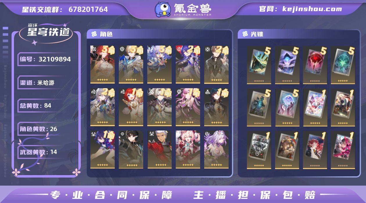 【崩坏·星穹铁道】冒险等级:70,男主,五星数量:40,五星角色:白露 * 3命,姬子 * 3命,杰帕德 * 3命,布洛妮娅 * 2命,瓦尔特 * 2命,黄泉 * 2命,希儿 * 1命,缇宝 * 1命,刃 * 1命,符玄 * 1命,流萤 * 1命,椒丘,银狼,灵砂,克拉拉,星期日,大黑塔,遐蝶,镜流,真理医生,花火,风堇,砂金,知更鸟,Archer,丹恒·腾荒__五星光锥:星海巡航 * 5精,记忆的质料 * 5精,记一位星神的陨落 * 5精,不息的演算 * 5精,孤独的疗愈 * 5精,记忆永不落幕 * 5精,银河铁道之夜,以世界之名,如泥酣眠,但战斗还未结束,镜中故我,行于流逝的岸,愿虹光永驻天空,命运从未公平__四星角色:阿兰 * 6命,娜塔莎 * 6命,虎克 * 6命,貊泽 * 6命,黑塔 * 6命,丹恒 * 6命,艾丝妲 * 6命,希露瓦 * 6命,停云 * 6命,桑博 * 6命,三月七 * 6命,青雀 * 6命,佩拉 * 6命,驭空 * 6命,卢卡 * 6命,玲可 * 6命,桂乃芬 * 6命,寒鸦 * 6命,雪衣 * 6命,米沙 * 6命,加拉赫 * 6命,素裳 * 5命2+1黄泉队 1+0流萤击破队 记忆队