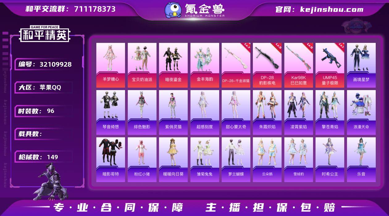可二次-地铁满天赋-连体王者5传说-精品公主号【羊梦糖心,宝贝奶油派,暗夜鎏金,金丰海韵,罪夜之冕】苹果 手Q-5粉装-6特效枪-0载具-3粉色飞行器-43529热力值-9王牌印记-96套装-149枪皮 【热门品类】:套装-浪漫天命,套装-暗影哥特,套装-粉红小猪 【粉色套装】:粉装-宝贝奶油派,粉装-暗夜鎏金,粉装-金丰海韵,角色-羊梦糖心,角色-罪夜之冕 【粉色枪皮等级】:UMP45-量子极限(一级),UMP45-萌骑冒险(五级),Kar98K-巳巳如意(五级),Mk14-福马献瑞(四级),DP-28-千金淑猫(七级),DP-28-豹影疾电(五级) 【粉色枪皮】:UMP45-量子极限,UMP45-萌骑冒险,Kar98K-巳巳如意,Mk14-福马献瑞,DP-28-千金淑猫,DP-28-豹影疾电 【粉色飞行器】:绝对恒星飞行器,炫彩糖果飞行器,星梦奇缘飞行器 【粉色降落伞】:绝对恒星降落伞,甜心宝贝降落伞,春暖花开降落伞,橘柚倾心降落伞,萌物绒绒降落伞,金丰海韵降落伞,樱桃泡泡降落伞,冷漠罗丽降落伞,喜羊羊与灰太狼降落伞,异瞳寒姬降落伞,炫彩糖果降落伞 【稀有套装】:套装-暖暖向日葵,角色-超感刻度,角色-甜心蒙太奇,套装-雪国风尚,套装-炫彩糖果,套装-马上来财,套装-雏菊兔兔,套装-萝兰蝴蝶,套装-云朵鹅,套装-雪绒豹,角色-时希公主,角色-乐音,角色-黯羽织刑,角色-夜瞳黯灵,套装-朱霞炽焰,套装-凌霄紫焰,套装-擎苍青焰,角色-绯色魅影,角色-紫俏灵猫,套装-画境星梦,套装-琴音绮想,角色-霜刃之御,角色-月烬之祷 【稀有枪皮】:AUG-冰晶雪宝,AKM-龙的传人,M16A4-莲影清波,SCAR-L-夜灯,SCAR-L-炫彩节奏,M416-红色方程式,GROZA-懵萌河马,GROZA-蓝莓炮弹,AUG-耀粉歌者,AUG-绝对恒星,M762-天降萌叽,M762-彩虹甜喵,M762-甜心宝贝,M762-第五大道,M762-萌物绒绒,M762-云朵鹅,Mk47-炫光之旅,G36C-懵萌河马,ACE32-画境星梦,ARX-凌...