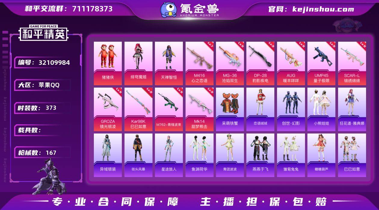 【特价出售】QQ钱包无法注销苹果Q-1稀有3粉装10特效枪5热门101套装167枪皮 47676热力值 11印记 历史卓越王牌7星 【1稀有】 AKM-缤纷海域 【3粉装】 猪猪侠 绯穹魔姬 天禅智恒 【10特效枪】 SCAR-L-锦绣绵绵 (5级) M416-心之恋语 (7级) Kar98K-巳巳如意 (5级) M762-青锋波束 (5级) MG-36-沧焰双生 (5级) DP-28-豹影疾电 (5级) AUG-暖羊咩咩 (5级) UMP45-量子极限 (5级) Mk14-甜梦熊击 (5级) GROZA-镜光银凌 (5级) 【5热门】 Mark.06 龟仙人 呆萌铁蟹 破蛋小黄鸡 极速红龙 【1背包】 深海小丑鱼背包