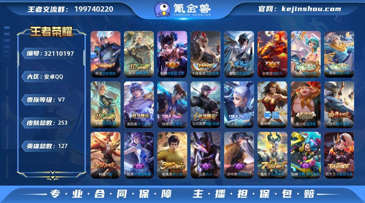 安卓Q-V7-至尊星耀IV段位-127英雄-253皮肤-1典藏皮肤-5传说-58史诗 【英雄全皮】:孙权全皮,猪八戒全皮 【荣耀典藏】:韩信弑枪猎影 【传说皮肤】:后羿神树通天,干将莫邪久胜战神,虞姬云霓雀翎,貂蝉仲夏夜之梦,孙悟空地狱火 【限定皮肤】:白起狰,狄仁杰阴阳师,虞姬凯尔特女王,赵云皇家上将,孙尚香蔷薇恋人,庄周高山流水,高渐离玩趣恶龙,扁鹊炼金王,扁鹊奇幻香踪,吕布御风骁将,元歌无心,夏侯惇朔风刀,甄姬游园惊梦,曹操烛龙,典韦穷奇,马可波罗暗影游猎,狄仁杰魔术师,狄仁杰万华元夜,达摩沙漠行僧,项羽海滩派对,老夫子醍醐杖,程咬金演武夺筹,韩信逐梦之影,韩信飞衡,花木兰默契交锋,孙悟空至尊宝,牛魔御旌,李元芳银河之约,李元芳云中旅人,钟馗驱傩正仪,杨戬潮玩骑兵,雅典娜单词大作战,雅典娜黎明之约,蔡文姬繁星吟游,太乙真人饕餮,鬼谷子原初探秘者,鬼谷子五谷丰年,苏烈千军破阵,弈星混沌棋,沈梦溪星空之诺,沈梦溪大漠名商,明世隐疑决卦,裴擒虎李小龙,裴擒虎擒涛扼浪,狂铁御狮,米莱狄御霄,云中君纤云弄巧,盾山御銮,猪八戒西部大镖客,猪八戒猪悟能,上官婉儿梁祝,蒙犽狂想玩偶喵,鲁班大师探海日志,桑启海盐诗旅,张良古海寻踪,妲己灵卜魔法,鬼谷子天穹祈灯,周瑜熔金海岸 【年限皮肤】:韩信飞衡,吕布御风骁将 【赛季限定】:扁鹊炼金王,虞姬凯尔特女王,白起狰,太乙真人饕餮,曹操烛龙,典韦穷奇,狂铁御狮,米莱狄御霄,牛魔御旌,盾山御銮,夏侯惇朔风刀,弈星混沌棋,明世隐疑决卦,老夫子醍醐杖,鬼谷子原初探秘者,狄仁杰万华元夜,程咬金演武夺筹,钟馗驱傩正仪,苏烈千军破阵,达摩沙漠行僧,沈梦溪大漠名商,李元芳云中旅人,桑启海盐诗旅,裴擒虎擒涛扼浪,鲁班大师探海日志,张良古海寻踪,鬼谷子天穹祈灯,甄姬逆浪荇歌,亚瑟荣光之誓,...