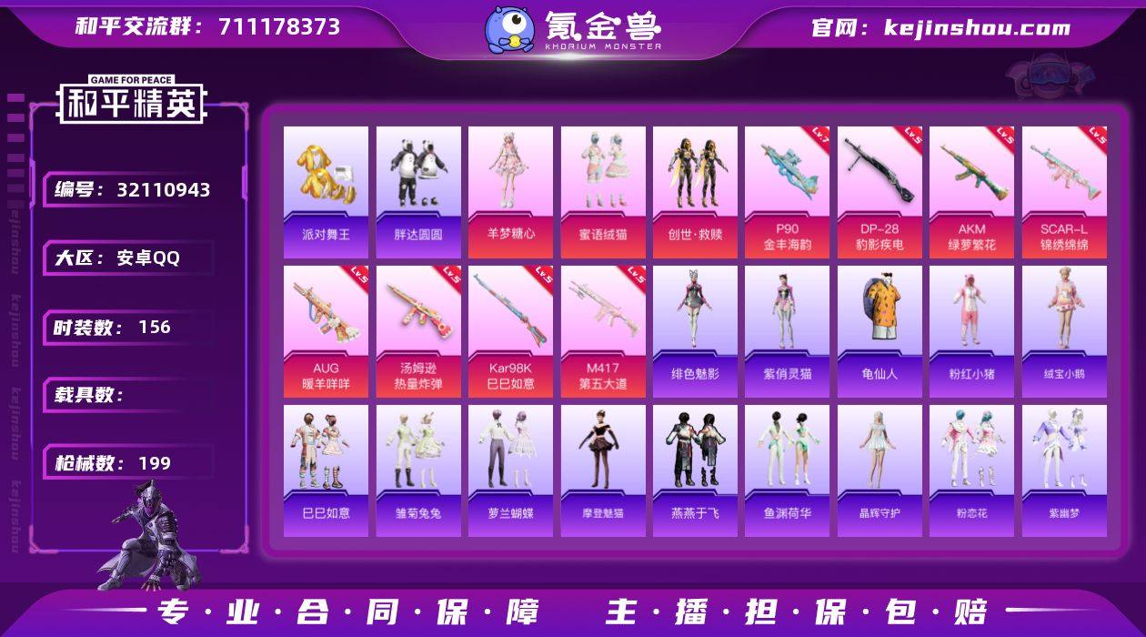 安卓 手Q-3粉装-10特效枪-0载具-1粉色飞行器-62387热力值-16王牌印记-156套装-199枪皮 【热门品类】:套装-派对舞王,套装-胖达圆圆,套装-龟仙人,套装-粉红小猪 【粉色套装】:粉装-蜜语绒猫,套装-创世·救赎,角色-羊梦糖心 【粉色枪皮等级】:AKM-绿萝繁花(五级),SCAR-L-锦绣绵绵(五级),AUG-暖羊咩咩(五级),汤姆逊-热量炸弹(五级),P90-金丰海韵(七级),Kar98K-巳巳如意(五级),M24-虎痴许褚(二级),Mk14-福马献瑞(五级),M417-第五大道(五级),DP-28-豹影疾电(五级) 【粉色枪皮】:AKM-绿萝繁花,SCAR-L-锦绣绵绵,AUG-暖羊咩咩,汤姆逊-热量炸弹,P90-金丰海韵,Kar98K-巳巳如意,M24-虎痴许褚,Mk14-福马献瑞,M417-第五大道,DP-28-豹影疾电 【粉色飞行器】:炫彩糖果飞行器 【粉色降落伞】:洛神天依降落伞,甜梦小狐降落伞,太空嘟嘟降落伞,冰川粉黛降落伞,暗夜鎏金降落伞,圣堂之誓降落伞,蜜语绒猫降落伞,金丰海韵降落伞,桃粉嫣然降落伞,荧海星豚降落伞,炫彩糖果降落伞 【稀有套装】:套装-龟仙人,套装-绒宝小鹅,套装-巳巳如意,套装-雪国风尚,套装-炫彩糖果,套装-马上来财,套装-雏菊兔兔,套装-萝兰蝴蝶,角色-摩登魅猫,套装-燕燕于飞,套装-鱼渊荷华,套装-晶辉守护,套装-粉恋花,套装-紫幽梦,套装-蓝冰羽,套装-星渊小夜曲,套装-霓虹热舞,套装-彩虹兔,套装-云朵鹅,套装-雪绒豹,套装-蓝海鲸歌,角色-绯色魅影,角色-紫俏灵猫 【稀有枪皮】:AUG-冰晶雪宝,AKM-冰凉西瓜,AKM-彩虹符号,AKM-破晓战魂,AKM-龙的传人,M16A4-幻世战舞者,SCAR-L-夜灯,SCAR-L-炫彩节奏,SCAR-L-玉兔迎春,SCAR-L-红色方程式,SCAR-L-小狗蛇点点,M416-糯团青竹,M416-绯红前夜,M416-蓝色火焰,GROZA-彩虹符号,GROZA-懵萌河马,GROZA-田园牧歌,AUG-耀粉歌者,M762-天降萌叽,M762-绯红前夜,M...