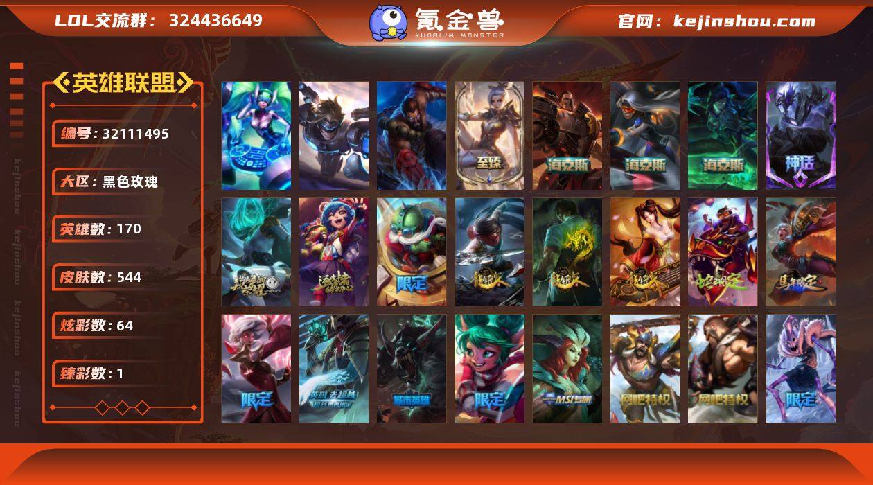 【店主推荐捡漏号/双区多皮肤号】未定级段位-170英雄-544皮肤-64炫彩-3终极-7神话-93限定-55传说-146史诗 【至臻皮肤】:至臻玉剑传说武剑仙锐雯 【臻彩皮肤】:红莲之刃锐雯 【年限皮肤】:龙的传人李青,银龙裁决泰隆,古琴余韵娑娜,神龙之翼库奇,替父从军花木兰 【海克斯皮肤】:新创战纪希维尔,摄魂使者薇恩,恐惧新星德莱厄斯 【情人节限定】:甜心宝贝安妮,觅心魔灵奥莉安娜 【冰雪限定】:幸福女神乐芙兰,圣诞开心鬼提莫,圣诞精灵崔丝塔娜,圣诞狂欢努努和威朗普,圣诞糖果棒厄运小姐,阿木木“主人不要我了”,胡桃夹子萨科,平安夜女神娑娜,英勇玩具兵普朗克,邪恶圣诞老人维迦,喜庆之树茂凯,冬季仙境奥莉安娜,雪默丁格,雪装奈德丽,圣诞玩偶波比,圣诞老人古拉加斯,圣诞驯鹿克格莫,魄罗骑士瑟庄妮,雪球也能爆炸吉格斯,冰雪节辛吉德,冰雪节玛尔扎哈,冰雪节格雷福斯,冰雪女神辛德拉 【终极皮肤】:DJ娑娜,灵魂守卫乌迪尔,未来战士伊泽瑞尔 【神话皮肤】:十周年纪念安妮,源代码乐芙兰,灰烬杀手塞拉斯,恐惧新星德莱厄斯,摄魂使者薇恩,新创战纪希维尔,至臻玉剑传说武剑仙 【限定皮肤】:银白审判凯尔,庆典女皇艾尼维亚,卧虎藏龙贾克斯,舞会公主安妮,诺斯费拉图弗拉基米尔,地底世界崔斯特,冠军之刃锐雯,冠军之矛卡莉丝塔,Fnatic古拉加斯,Fnatic迦娜,Fnatic嘉文四世,Fnatic卡尔萨斯,暗杀星奥莉安娜,暗杀星蒙多,暗杀星努努和威朗普,暗杀星慎,SKTT1贾克斯,SKTT1劫,SKTT1婕拉,SKTT1李青,SSW辛吉德,SSW图奇,SSW雷恩加尔,SSW锤石,SKTT1阿利斯塔,SKTT1阿兹尔,SKTT1卡莉丝塔,SKTT1雷克顿,SKTT1瑞兹,SKTT1伊莉丝,勇敢的心德莱厄斯,电玩女神厄运小姐,电玩勇者锐雯,胜利枪神格雷福斯,胜利女神奥莉安娜,胜利之剑亚托克斯,胜利枪神卢锡安,海贼瑞兹,南瓜头...