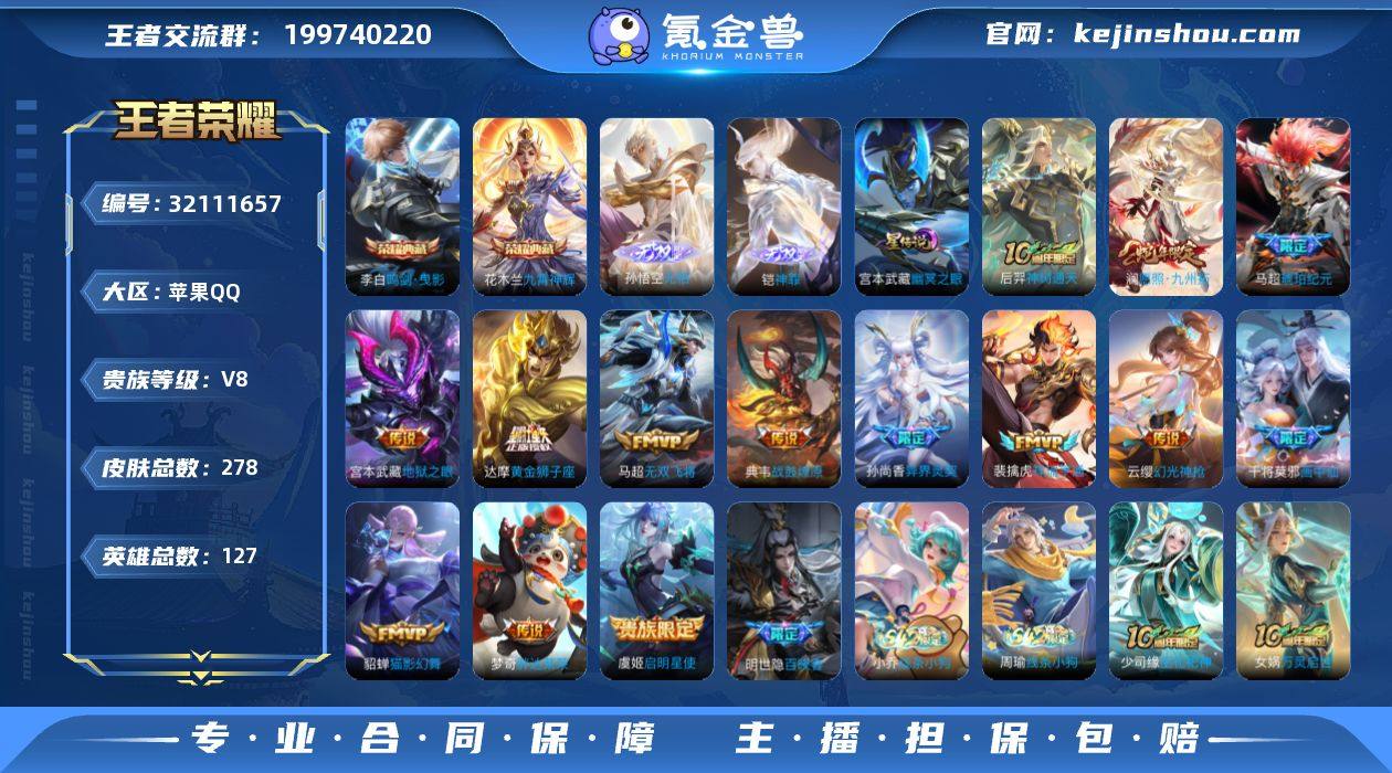 【Ewz439】【省标裴擒虎+省标梦奇+省标扁鹊,8个性按键,荣耀水晶幸运值239,秒换绑】苹果Q-V8-最强王者段位-127英雄-278皮肤-2典藏皮肤-2无双-14传说-75史诗 【英雄全皮】:孙权全皮 【荣耀典藏】:李白鸣剑曳影,花木兰九霄神辉 【无双皮肤】:孙悟空无相,铠神罪 【传说皮肤】:后羿神树通天,澜愿照九州拓,云缨幻光神枪,裴擒虎祥瑞亨通,典韦战鼓燎原,马超琥珀纪元,干将莫邪画中仙,马超无双飞将,孙尚香异界灵契,虞姬启明星使,貂蝉猫影幻舞,达摩黄金狮子座,梦奇胖达荣荣,宫本武藏地狱之眼 【限定皮肤】:白起狰,狄仁杰阴阳师,虞姬凯尔特女王,赵云皇家上将,嬴政优雅恋人,嬴政白昼王子,孙尚香蔷薇恋人,孙尚香异界灵契,鲁班七号狮舞东方,鲁班七号乒乒小将,庄周蜃楼王,庄周高山流水,高渐离死亡摇滚,阿轲迷踪丽影,钟无艳王者之锤,孙膑妖精王,扁鹊炼金王,芈月重明,吕布猎兽之王,周瑜赤莲之焰,元歌云间偶戏,夏侯惇朔风刀,甄姬游园惊梦,曹操烛龙,曹操天狼征服者,典韦穷奇,马可波罗暗影游猎,狄仁杰魔术师,狄仁杰万华元夜,达摩星际陆战队,项羽海滩派对,老夫子圣诞老人,老夫子醍醐杖,程咬金演武夺筹,刘邦夺宝奇兵,韩信逐梦之影,韩信飞衡,兰陵王驯魔猎人,亚瑟狮心王,亚瑟潮玩骑士王,牛魔御旌,后羿如梦令,李元芳银河之约,李元芳云中旅人,虞姬启明星使,钟馗神迹守卫,钟馗驱傩正仪,杨玉环遇见飞天,女娲朔望之晖,干将莫邪画中仙,雅典娜单词大作战,雅典娜黎明之约,蔡文姬繁星吟游,太乙真人饕餮,太乙真人华丽摇滚,鬼谷子原初探秘者,鬼谷子五谷丰年,大乔白鹤梁神女,百里玄策原初追逐者,弈星混沌棋,梦奇顽趣,沈梦溪星空之诺,沈梦溪大漠名商,明世隐疑决卦,裴擒虎李小龙,裴擒虎擒涛扼浪,狂铁御狮,米莱狄御霄,米莱狄胡桃异想国,云中君纤云弄巧,伽罗...