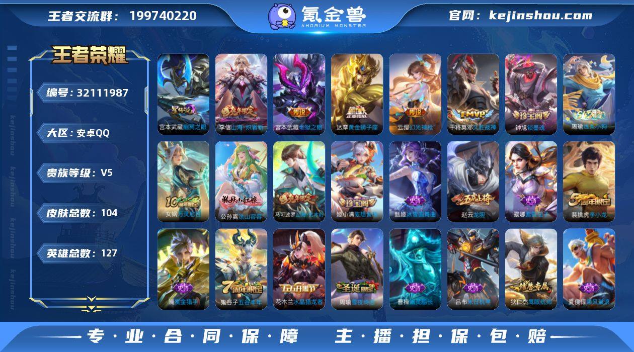 贵族等级:V5 典藏皮肤数:0 珍品无双皮肤数:0 无双皮肤数:0 珍品传说皮肤数:0 传说皮肤数:5 史诗皮肤数:31 皮肤数:104 英雄数:127 段位:星耀