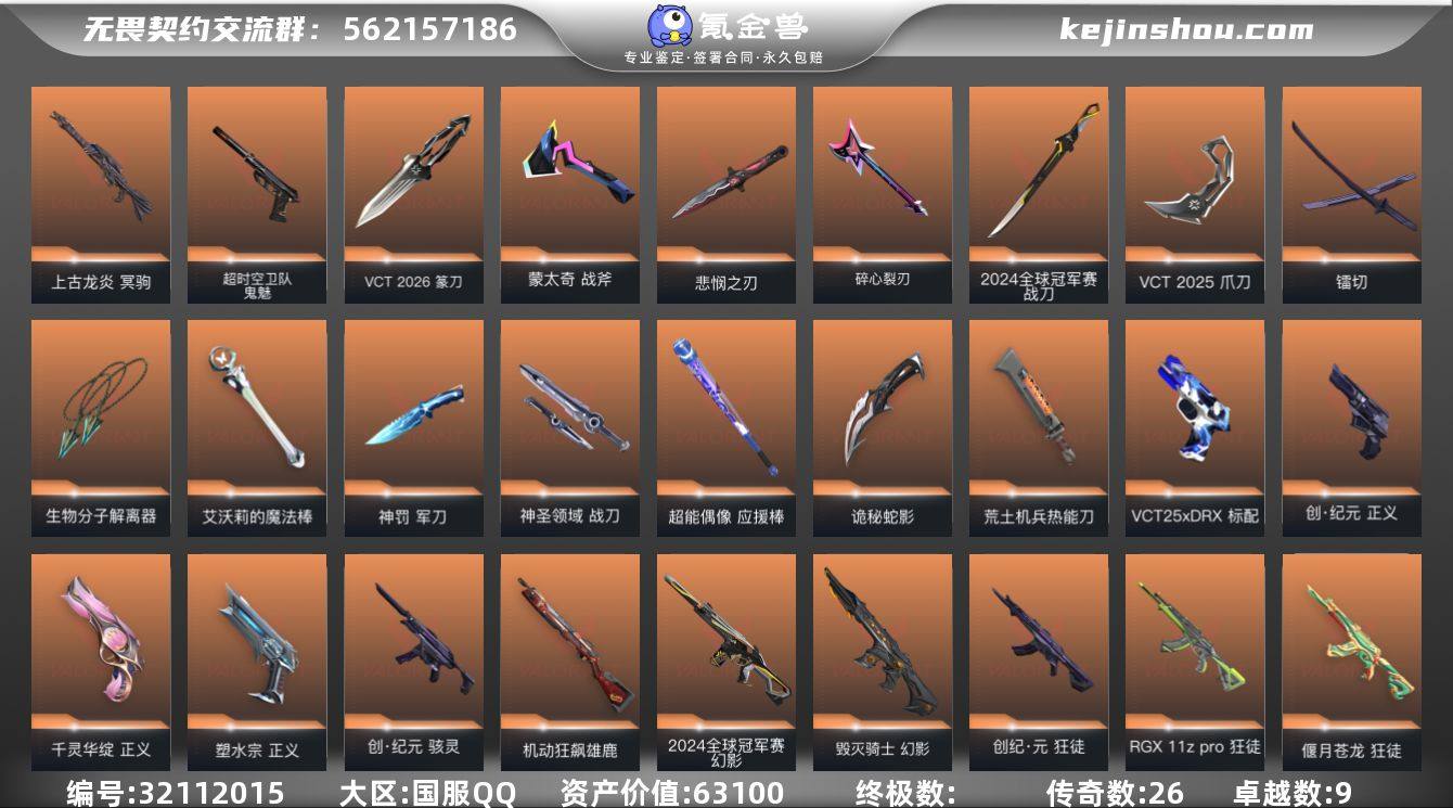皮肤资产价值:63100 已用源晶点数:1435 悲悯之刃,军刀-神罚,诡秘蛇影 VCT 2025 爪刀 战刀-2024全球冠军赛,镭切-创·纪元,荒土机兵热能刀,神圣领域 战刀 VCT 2026 篆刀 蒙太奇 战斧,超能偶像 应援棒 碎心裂刃,生物分子解离器-归零者//2.0,艾沃莉的魔法棒 幻影-2024全球冠军赛,幻影-毁灭骑士,狂徒-创·纪元,RGX 11z pro 狂徒,狂徒-偃月苍龙,戍卫-掠影,幻影-侦察力量,幻影 神中神罚,幻影 异鳞魔蛇,狂徒-盖亚的复仇,狂徒-盖世英雄,狂徒-堕天遗武,狂徒-海洋之星,超集系统 狂徒,风暴之子 戍卫,幻影-聚合之力,幻影-末日之翼,幻影-纳米打击,幻影-神圣领域,幻影-甜心猎手,狂徒-超能偶像,狂徒-诡秘蛇影,狂徒-荒土机兵,狂徒-幻心猎手,獠犬-采蜜小蜂队,獠犬-神圣领域,獠犬-诛心猎手,蒙太奇 幻影,戍卫-超能偶像,戍卫-逆冲蛮牛,戍卫-甜心猎手,戍卫-月球哨兵,戍卫-折光棱晶 骇灵-创·纪元,蜂刺-聚合之力,蜂刺-甜心猎手,骇灵-荒土机兵,骇灵-星云暗涌,蒙太奇 骇灵,蜂刺-折光棱晶 奥丁-末日之翼,奥丁-纳米打击,奥丁-诛心猎手,蒙太奇 战神,战神-采蜜小蜂队,战神-神圣领域 冥驹-上古龙炎,莽侠-创·纪元,冥驹-堕天遗武,超集系统 飞将,风暴之子 冥驹,飞将-聚合之力,飞将-末日之翼,冥驹-荒土机兵,冥驹-诛心猎手,莽侠-诡秘蛇影,莽侠-甜心猎手,莽侠-月球哨兵 标配-VCT25xDRX,超时空卫队 鬼魅,正义-创·纪元,正义-千灵华绽,正义-塑水宗,标配-超能偶像,标配-荒土机兵,标配-折光棱晶,超集系统 标配,短炮-末日之翼,短炮-甜心猎手,风暴之子 正义,鬼魅-采蜜小蜂队,鬼魅-诡秘蛇影,鬼魅-幻心猎手,鬼魅-神罚2.0,鬼魅-星云暗涌,狂怒-聚合之力,狂怒-逆冲蛮牛,狂怒-神圣领域,蒙太奇 狂怒,正义-超限闪存,正义-纳米打击,正义-日耀风暴,正义-月球哨兵,正义-诛心猎手 雄鹿-机动狂飙,风暴之子 雄鹿,判官-采蜜小蜂队,判官-超能偶像,判官-诡秘蛇影,判官-纳米打击,雄鹿-逆冲蛮牛,雄鹿-月球哨兵 创·纪元卡面,Clutch卡面,采蜜小峰队卡面,超能偶像卡面,分崩离析卡面,复活专家卡面,分神的决斗者卡面,无畏契约GO!第一卷:捷风卡面,无畏契约GO!第一卷:零卡面,无畏契约GO!第一卷:奇乐卡面,无畏契约GO!第一卷:芮娜卡面,钢锁工牌卡面,归乡蝰蛇卡面,聚合之力卡面,梦幻奶茶卡面,2024全球冠军赛卡面,热舞环节卡面,势不可挡蝰蛇卡面,势不可挡星礈卡面,双城之战拥抱卡面,失而复得卡面,声感陷阱设计图卡面,生意人麦宝卡面,铁之华卡面,VCT2025CN联赛卡面,VCT2025EMEA联赛卡面,VCT2025美洲联赛卡面,VCT2025太平洋联赛卡面,VCT25xDRX卡面,VCTCN首冠卡面,2023 VCT美洲联赛卡面,2023 VCT太平洋联赛卡面,万圣夜卡面,我眼中的世界卡面,最高舞台卡面,战术小伙伴的夏日卡面,终章:生意人麦宝卡面 卖家说:诚信要的可以看看很精品