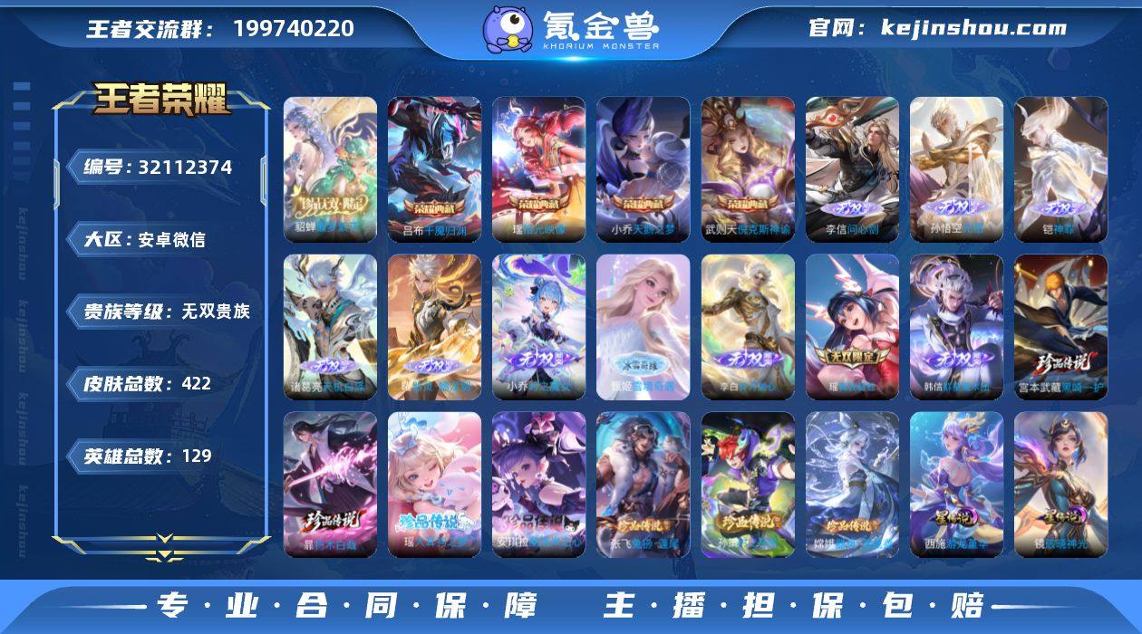 KY20907 安卓微信 422皮低场次无双V10女号5典藏10无双7珍品【美神一套 全皮西施杨玉环朵莉亚少司缘 1水晶未兑换 1861点券未使用 满级灵宝】6.8W流光积分 67按键2天幕 巅峰1300 貂蝉珍品无双 4星元174限定58传说 金标西施/小乔/瑶 中路30段 2143星币 1572英雄碎片 311皮肤碎片 11张改名卡 4荣耀印记 关羽神骥·镇沧海,朵莉亚神骥·鸣幻洲,狄仁杰神骥·赴朔漠,云缨神骥·越千峰 营地号:1863887029 【珍品传说】孙策时之奇旅,器灵·落星盏,兔狲·蓬尾,黑崎一护,朽木白哉,酷洛米之心,大耳狗之梦, 【无 双】韩信群星魔术团,真我赫兹瑶,时之魔女,碎月剑心,甄姬雪境奇遇,器灵·螭龙剑,馥梦繁花,天机白泽,神罪,无相,问心剑, 【荣耀典藏】武则天,倪克斯神谕,天鹅之梦,拾光映像,千魇归渊, 【星元皮肤】金色仲夏夜,幻海之心,破晓神光,游龙堇华, 【热门限定】愿照·众生和,神骥·镇沧海,神骥·鸣幻洲,神骥·赴朔漠,神骥·越千峰,星君·娄金,愿照·岁时盈,愿照·千秋盛,愿照·山河定,愿照·九州拓,愿照·福禄聚,至尊宝,乘龙·问璇玑,乘龙·铭钟鼎,乘龙·聚宝船,白虎志,龙胆,白鹤梁神女,夜都魔契,深海之息,寅虎·心曲,寅虎·展翼,白晶晶,淬星耀世,时之奇旅,冰霜恋舞曲,一生所爱,大圣娶亲,热情桑巴,奇迹圣诞,时之奇旅,神器·万象笔,山海·琳琅生,山海·碧波行,山海·苍雷引,炽翼辉光,燃星之曲,浮生妄,启明星使,霜北刀,逐霄战戟,巫礼祀神,纵目迁山,万灵启世,千山共赴,涂山容容,九山相柳,幻珠鲛人, 【限定传说】玄雷天君,拒霜思,猫狗日记男,久胜战神,一念神魔,猫狗日记女,电玩小子,地狱火,苍穹之光,游龙清影,诗语江南,音你心动女,修罗,无双飞将,龙骑士,未来纪元,神迹守卫,炽阳神光,飞鸢探春,绛天战甲,黄金射手座,天秀·启明,仲夏夜之梦,魅语,晚萤,海洋之心,千年之狐,末日机甲男,遇见神鹿,唤灵魅影,无限星赏官,原初探秘者,原初追逐者,暗隐猎兽者,霜月吟,水晶猎龙...