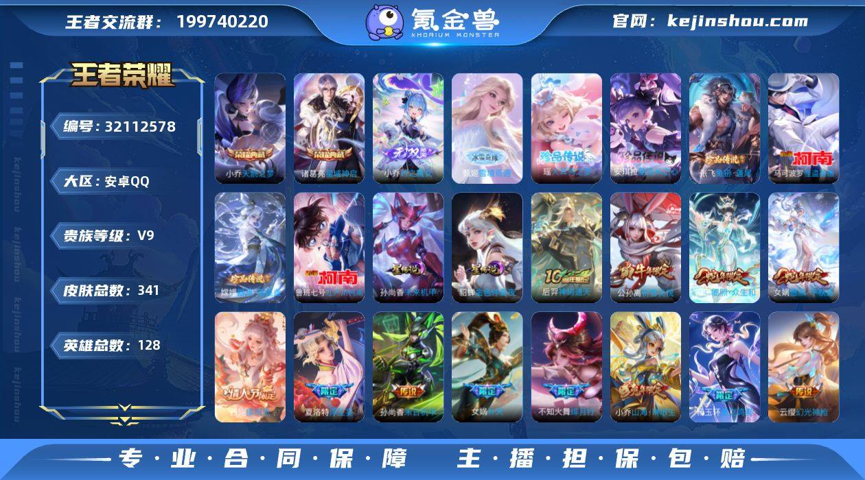 女娲1.2万安琪拉1.1万小乔1.1万西施1万甄姬:1万,安卓Q-V9-最强王者段位-128英雄-341皮肤-2典藏皮肤-2无双-6珍品传说-23传说-123史诗【英雄全皮】:孙权全皮,杨玉环全皮,女娲全皮,敖隐全皮,夏洛特全皮,戈娅全皮,空空儿全皮,影全皮,姬小满全皮【荣耀典藏】:小乔天鹅之梦,诸葛亮星域神启【无双皮肤】:甄姬雪境奇遇,小乔时之魔女【珍品传说】:安琪拉酷洛米之心,瑶大耳狗之梦,张飞兔狲蓬尾,嫦娥器灵落星盏,鲁班七号江户川柯南,马可波罗怪盗基德【传说皮肤】:貂蝉神骥聚万邦,后羿神树通天,西施续相思,杨玉环星之鸣奏,女娲愿照千秋盛,妲己愿照众生和,云缨幻光神枪,桑启鸣野蒿,上官婉儿妄想奇谈,安琪拉追逃游戏,夏洛特浮生妄,干将莫邪画中仙,小乔山海琳琅生,不知火舞绯月行,女娲补天,王昭君乞巧织情,小乔音你心动,公孙离祈雪灵祝,虞姬启明星使,干将莫邪久胜战神,貂蝉仲夏夜之梦,孙尚香末日机甲,武则天海洋之心【限定皮肤】:蒙犽顽岩魄,蔡文姬夏日便利店,大乔绒语心约,虞姬夏日便利店,姜子牙天穹之誓,狄仁杰阴阳师,小乔山海琳琅生,赵云皇家上将,墨子神迹守卫,嬴政白昼王子,孙尚香蔷薇恋人,庄周高山流水,阿轲迷踪丽影,钟无艳超时空战士,扁鹊奇幻香踪,白起夜都怪侠,芈月幻夜卜梦,元歌云间偶戏,元歌无心,甄姬落雪兰心,狄仁杰魔术师,狄仁杰万华元夜,达摩星际陆战队,达摩沙漠行僧,项羽海滩派对,老夫子航海奇遇记,安琪拉魔法小厨娘,安琪拉追逃游戏,程咬金演武夺筹,王昭君午后时光,兰陵王驯魔猎人,兰陵王金庭之子,花木兰青春决赛季,花木兰瑞麟志,不知火舞绯月行,后羿圣弓游侠,李元芳云中旅人,虞姬启明星使,钟馗驱傩正仪,杨玉环遇见飞天,杨玉环寅虎心曲,杨戬潮玩骑兵,女娲朔望之晖,女娲补天,干将莫邪冰霜恋舞曲,干将莫邪胡桃夹子,干将莫...