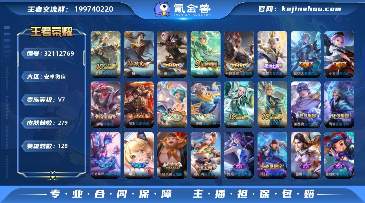 【AZW145】安卓WX-V7-最强王者段位-128英雄-279皮肤-1典藏英雄-8传说-68史诗 【英雄全皮】:孙权全皮,鬼谷子全皮 【荣耀典藏】:武则天英雄 【传说皮肤】:后羿神树通天,嬴政玄雷天君,桑启鸣野蒿,曜李逍遥 ,小乔音你心动,曜云鹰飞将,干将莫邪久胜战神,武则天海洋之心 【限定皮肤】:大乔绒语心约,姜子牙天穹之誓,狄仁杰阴阳师,赵云皇家上将,妲己时之奇旅,嬴政优雅恋人,嬴政白昼王子,庄周高山流水,高渐离玩趣恶龙,吕布猎兽之王,夏侯惇朔风刀,甄姬幽恒,典韦穷奇,狄仁杰魔术师,狄仁杰万华元夜,达摩沙漠行僧,项羽海滩派对,老夫子醍醐杖,程咬金演武夺筹,王昭君午后时光,兰陵王金庭之子,牛魔御旌,后羿圣弓游侠,李元芳银河之约,李元芳云中旅人,钟馗驱傩正仪,干将莫邪冰霜恋舞曲,干将莫邪真爱魔法,雅典娜黎明之约,蔡文姬繁星吟游,鬼谷子原初探秘者,鬼谷子五谷丰年,苏烈千军破阵,百里玄策原初追逐者,弈星混沌棋,梦奇顽趣,沈梦溪星空之诺,沈梦溪大漠名商,明世隐疑决卦,裴擒虎李小龙,裴擒虎擒涛扼浪,狂铁御狮,狂铁电玩高手,米莱狄御霄,猪八戒猪悟能,上官婉儿梁祝,曜李逍遥 ,鲁班大师探海日志,桑启海盐诗旅,张良古海寻踪,蒙恬荣光圣徽,鬼谷子天穹祈灯,姬小满妄想食味,沈梦溪龙舞盛年,刘邦剑破天穹 【年限皮肤】:甄姬幽恒 【赛季限定】:典韦穷奇,狂铁御狮,米莱狄御霄,牛魔御旌,夏侯惇朔风刀,弈星混沌棋,明世隐疑决卦,老夫子醍醐杖,鬼谷子原初探秘者,狄仁杰万华元夜,程咬金演武夺筹,钟馗驱傩正仪,苏烈千军破阵,达摩沙漠行僧,兰陵王金庭之子,沈梦溪大漠名商,李元芳云中旅人,桑启海盐诗旅,裴擒虎擒涛扼浪,鲁班大师探海日志,张良古海寻踪,鬼谷子天穹祈灯,刘邦剑破天穹,姜子牙天穹之誓,东皇太一噬灭天穹,太乙真人谧流熔炉,钟馗虚灵犬护...