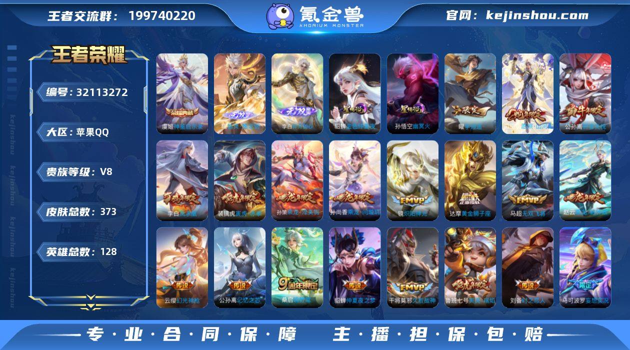 【高质量推荐·1.1W小国周瑜·万战小国阿古朵·全皮阿古朵·万战金标镜·万战金标元流之子·万战金标马超·金标老虎·神鉴启示录·碎月剑心·器灵螭龙剑·虎年全限定·龙年全限定·李逍遥·祈雪灵祝·无双飞将·妄想实况·愿照山河定·可二次】YXw13741-苹果Q-128英雄-373皮肤-22王者印记-300铭文-贵族积分8w【贵族8】【1典藏·2无双·3星传说·23传说·7按键】【因赛季更新游戏段付以上号为准!】 【英雄全皮】:苍全皮,蒙恬全皮,阿古朵全皮 【荣耀典藏】:虞姬神鉴启示录 【无双皮肤】:李白碎月剑心,曜器灵螭龙剑 【星元皮肤】:刘备时之思念,孙悟空幽冥火,貂蝉金色仲夏夜 【传说皮肤】:司空震愿照山河定,云缨幻光神枪,桑启鸣野蒿,孙尚香乘龙问璇玑,孙策乘龙淬吴钩,赵云乘龙铭钟鼎,马可波罗妄想实况,公孙离记忆之芯,马超无双飞将,裴擒虎寅虎赤拳,鲁班七号寅虎瑞焰,曜李逍遥 ,公孙离祈雪灵祝,镜炽阳神光,虞姬启明星使,刘备时之恋人,张良黄金白羊座,干将莫邪久胜战神,达摩黄金狮子座,梦奇胖达荣荣,貂蝉仲夏夜之梦,李白凤求凰,孙悟空地狱火 【限定皮肤】:暃埋骨钱,大乔绒语心约,姜子牙天穹之誓,狄仁杰阴阳师,廉颇寅虎御盾,赵云皇家上将,嬴政白昼王子,鲁班七号狮舞东方,鲁班七号寅虎瑞焰,庄周高山流水,高渐离死亡摇滚,孙膑寅虎展翼,芈月重明,芈月白晶晶,吕布猎兽之王,元歌云间偶戏,元歌无心,甄姬游园惊梦,曹操烛龙,典韦穷奇,典韦蓝屏警告,马可波罗暗影游猎,马可波罗山海玄木吟,马可波罗妄想实况,狄仁杰魔术师,狄仁杰万华元夜,达摩沙漠行僧,项羽海滩派对,老夫子醍醐杖,关羽冰锋战神,程咬金演武夺筹,露娜一生所爱,韩信逐梦之影,兰陵王金庭之子,亚瑟潮玩骑士王,孙悟空至尊宝,孙悟空大圣娶亲,孙悟空孙行者,牛魔御旌,后羿圣弓游侠,李元芳银河之约,李元芳云中旅人,虞姬...