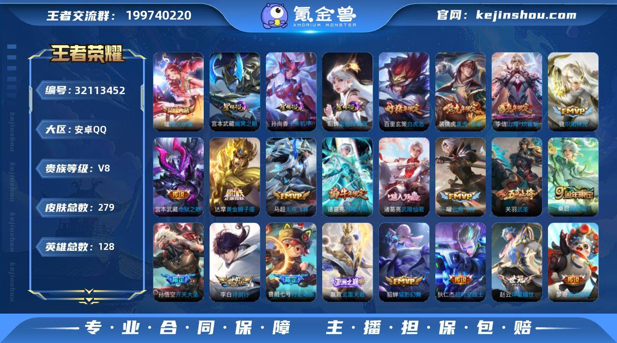 【秒换绑】安卓Q-V8-【金标白起】最强王者段位-128英雄-279皮肤-1典藏皮肤-21传说-93史诗 【英雄全皮】:空空儿全皮,影全皮 【荣耀典藏】:瑶拾光映像 【传说皮肤】:嬴政玄雷天君,桑启鸣野蒿,鲁班七号时之奇旅,孙悟空齐天大圣,李信山海炽霜斩,李白诗剑行,马超无双飞将,裴擒虎寅虎赤拳,赵云淬星耀世,诸葛亮时雨天司,镜炽阳神光,虞姬启明星使,关羽武圣,曜云鹰飞将,貂蝉猫影幻舞,达摩黄金狮子座,百里玄策白虎志,梦奇胖达荣荣,诸葛亮武陵仙君,宫本武藏地狱之眼,狄仁杰超时空战士 【限定皮肤】:蒙犽顽岩魄,姜子牙天穹之誓,狄仁杰阴阳师,赵云皇家上将,鲁班七号狮舞东方,鲁班七号时之奇旅,高渐离玩趣恶龙,钟无艳超时空战士,扁鹊奇幻香踪,白起夜都怪侠,芈月幻夜卜梦,元歌无心,甄姬落雪兰心,马可波罗暗影游猎,狄仁杰魔术师,达摩沙漠行僧,项羽海滩派对,关羽冰锋战神,关羽武圣,露娜一生所爱,王昭君午后时光,兰陵王金庭之子,孙悟空至尊宝,孙悟空孙行者,孙悟空齐天大圣,李元芳云中旅人,虞姬启明星使,杨戬潮玩骑兵,雅典娜黎明之约,鬼谷子五谷丰年,诸葛亮武陵仙君,诸葛亮时雨天司,黄忠火炮绅士,苏烈千军破阵,百里玄策白虎志,百里玄策原初追逐者,梦奇顽趣,公孙离玉兔公主,沈梦溪大漠名商,明世隐吟游魔法,裴擒虎寅虎赤拳,裴擒虎擒涛扼浪,狂铁电玩高手,云中君纤云弄巧,李信山海炽霜斩,上官婉儿梁祝,上官婉儿神器万象笔,嫦娥拒霜思,嫦娥暖冬兔眠,西施玲珑珍味,鲁班大师探海日志,桑启海盐诗旅,暃星界游侠,戈娅驭风魔法,艾琳流音漫舞,司空震地狱燃心,阿古朵江河有灵,张良古海寻踪,蒙犽百解令,蒙恬荣光圣徽,高渐离燃音魔法,妲己灵卜魔法,鬼谷子天穹祈灯,姬小满妄想食味,沈梦溪龙舞盛年,刘邦剑破天穹,程咬金群星魔术团,周瑜熔金海岸 【年限皮...