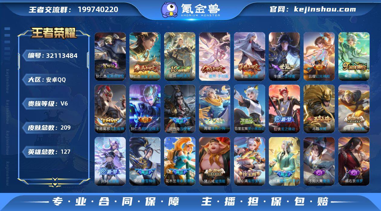 W15062,,可立即换绑无需挂单养号,,铭文满级,,,传说9,,,星传说1,,按键5,,,夺宝186,,安卓Q-V6-最强王者段位-127英雄-209皮肤-9传说-65史诗 【英雄全皮】:敖隐全皮,空空儿全皮,影全皮 【传说皮肤】:狄仁杰神骥赴朔漠,后羿神树通天,虞姬愿照岁时盈,云缨幻光神枪,桑启鸣野蒿,李信一念神魔,干将莫邪久胜战神,李白凤求凰,狄仁杰超时空战士 【限定皮肤】:姜子牙天穹之誓,李白谪仙醉月,狄仁杰阴阳师,赵云皇家上将,孙尚香蔷薇恋人,庄周高山流水,芈月幻夜卜梦,元歌无心,狄仁杰魔术师,狄仁杰万华元夜,达摩沙漠行僧,项羽海滩派对,程咬金演武夺筹,韩信傲雪梅枪,王昭君午后时光,兰陵王金庭之子,花木兰青春决赛季,孙悟空孙行者,后羿圣弓游侠,李元芳银河之约,李元芳云中旅人,钟馗驱傩正仪,干将莫邪真爱魔法,鬼谷子五谷丰年,黄忠火炮绅士,苏烈千军破阵,梦奇顽趣,沈梦溪大漠名商,裴擒虎擒涛扼浪,狂铁电玩高手,猪八戒猪悟能,嫦娥拒霜思,鲁班大师探海日志,镜匿光追影者,桑启海盐诗旅,阿古朵江河有灵,张良古海寻踪,蒙犽百解令,蒙恬荣光圣徽,鬼谷子天穹祈灯,姬小满妄想食味,沈梦溪龙舞盛年,刘邦剑破天穹,刘备异域游侠 【年限皮肤】:李白凤求凰,虞姬愿照岁时盈 【赛季限定】:狄仁杰万华元夜,程咬金演武夺筹,钟馗驱傩正仪,苏烈千军破阵,达摩沙漠行僧,兰陵王金庭之子,沈梦溪大漠名商,李元芳云中旅人,桑启海盐诗旅,裴擒虎擒涛扼浪,鲁班大师探海日志,张良古海寻踪,鬼谷子天穹祈灯,刘邦剑破天穹,姜子牙天穹之誓,东皇太一噬灭天穹,太乙真人谧流熔炉,甄姬逆浪荇歌,亚瑟荣光之誓,梦奇顽趣,蒙恬荣光圣徽 【战令限定】:李元芳银河之约,干将莫邪真爱魔法,后羿圣弓游侠,黄忠火炮绅士,芈月幻夜卜梦,狂铁电玩高手,王昭君午后时光,亚连破空之剑...