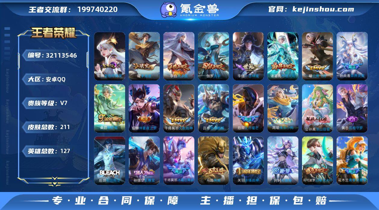 W15055,,,可立即换绑无需挂单养号,,铭文满级,,,传说12,,,星传说1,,按键1,,夺宝316,,安卓Q-V7-至尊星耀V段位-127英雄-211皮肤-12传说-77史诗 【传说皮肤】:桑启鸣野蒿,吕布怒海麟威,后羿无尽星芒,孙尚香异界灵契,曜李逍遥 ,诸葛亮时雨天司,曜云鹰飞将,李信一念神魔,伽罗太华,干将莫邪久胜战神,貂蝉仲夏夜之梦,李白凤求凰 【限定皮肤】:姜子牙天穹之誓,杨戬破阵退雄兵,李白谪仙醉月,狄仁杰阴阳师,赵云皇家上将,墨子神迹守卫,嬴政优雅恋人,孙尚香蔷薇恋人,孙尚香异界灵契,庄周高山流水,芈月白晶晶,芈月幻夜卜梦,元歌云间偶戏,元歌无心,马可波罗山海玄木吟,狄仁杰魔术师,狄仁杰万华元夜,达摩星际陆战队,达摩沙漠行僧,项羽海滩派对,老夫子航海奇遇记,关羽冰锋战神,程咬金演武夺筹,王昭君凤凰于飞,兰陵王金庭之子,花木兰青春决赛季,亚瑟潮玩骑士王,孙悟空至尊宝,后羿圣弓游侠,后羿无尽星芒,李元芳云中旅人,虞姬霸王别姬,钟馗驱傩正仪,杨玉环遇见飞天,干将莫邪冰霜恋舞曲,干将莫邪真爱魔法,雅典娜黎明之约,鬼谷子原初探秘者,鬼谷子五谷丰年,诸葛亮时雨天司,黄忠火炮绅士,苏烈千军破阵,百里玄策原初追逐者,百里守约朱雀志,梦奇顽趣,沈梦溪大漠名商,裴擒虎天狼狩猎者,裴擒虎擒涛扼浪,米莱狄胡桃异想国,云中君纤云弄巧,伽罗太华,猪八戒猪悟能,嫦娥拒霜思,嫦娥暖冬兔眠,曜李逍遥 ,鲁班大师探海日志,镜匿光追影者,桑启海盐诗旅,暃星界游侠,张良古海寻踪,蒙犽百解令,蒙恬荣光圣徽,鬼谷子天穹祈灯,沈梦溪龙舞盛年,刘邦剑破天穹,程咬金群星魔术团 【年限皮肤】:王昭君凤凰于飞,李白凤求凰,百里守约朱雀志,伽罗太华,诸葛亮时雨天司,马可波罗山海玄木吟 【赛季限定】:鬼谷子原初探秘者,狄仁杰万华元夜,程咬金演武夺筹,...
