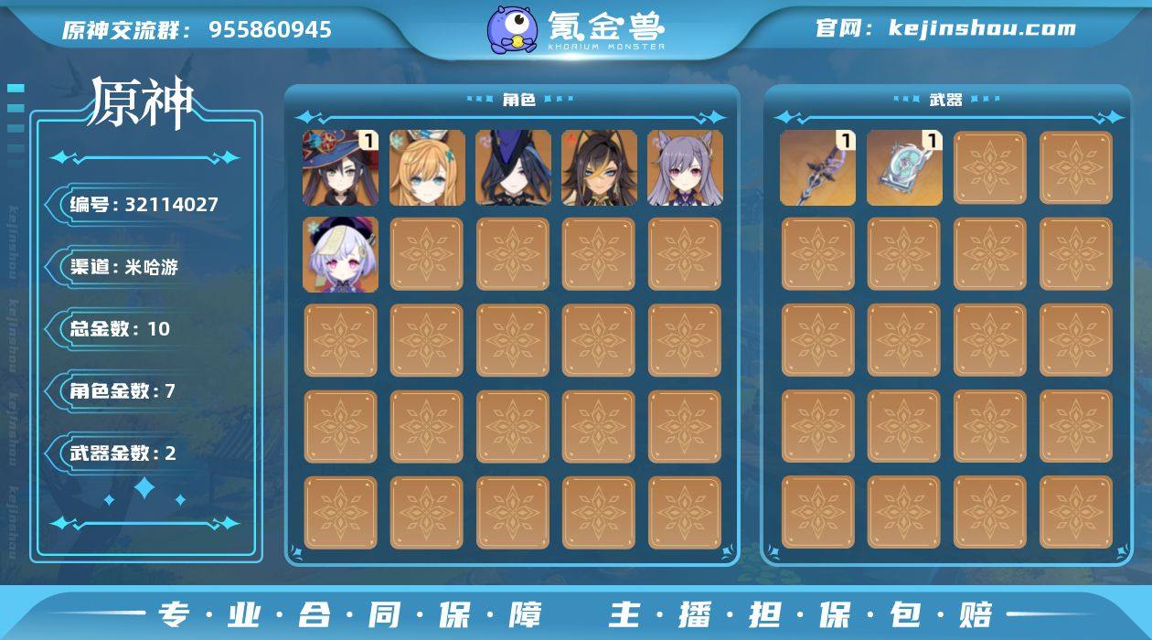 【YSYT1005】55级/10黄/女主/7个五星角色/2个五星武器/克洛琳德/0命菲林斯/刻晴/爱可菲/一命莫娜/迪希雅/七七/赦罪/四风原典