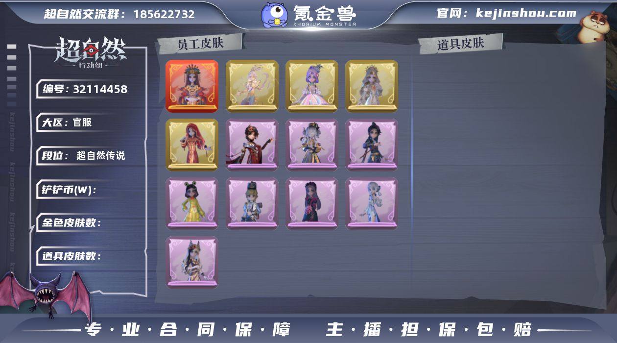 段位超自然传说 1红4金8紫 镜生遗梦 遗失的童话 莲华渡 圣光之谕 镜花辞 呱呱雨衣 丝缕哀歌 王子与骑士 绣春逍影 仙锋小姐 白光莹 素影瑶光 除妖小师妹 超自然行动组账号