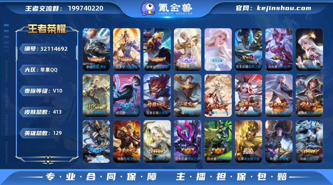 【连体吃鸡苹果Q 11粉4特效枪2载具 满级五爪 放客 新101】【店铺主推v10·4典藏·2无双·3星传说·43传说·全息碎影·鸣剑曳影·九霄神辉·雪境奇遇·无相·满牛年限定·绝版梅西·绝版神奇女侠·白虎志·李逍遥·寅虎赤拳·祈雪灵祝·永曜之星·霜北刀·愿照九州拓·时雨天司·至尊宝·可二次】YXw16897-苹果Q-129英雄-406皮肤-14王者印记-300铭文-贵族积分21w【贵族10】【v10·4典藏·2无双·3星传说·43传说·1天幕·11按键·231个性戳戳】【因赛季更新游戏段付以上号为准!】 【英雄全皮】:司马懿全皮,孙权全皮,猪八戒全皮,空空儿全皮 【荣耀典藏】:武则天英雄,孙悟空全息碎影,李白鸣剑曳影,花木兰九霄神辉 【无双皮肤】:甄姬雪境奇遇,孙悟空无相 【星元皮肤】:貂蝉金色仲夏夜,宫本武藏幽冥之眼,孙尚香未来机甲 【天幕】:共赏芳华天幕 【传说皮肤】:后羿神树通天,司马懿九山相柳,澜愿照九州拓,桑启鸣野蒿,夏侯惇霜北刀,艾琳觅芳踪,花木兰燃星之曲,马超无双飞将,孙策末日机甲,裴擒虎寅虎赤拳,赵云淬星耀世,王昭君乞巧织情,曜李逍遥 ,周瑜音你心动,小乔音你心动,李元芳飞鸢探春,兰陵王默契交锋,公孙离祈雪灵祝,诸葛亮时雨天司,铠绛天战甲,镜炽阳神光,虞姬启明星使,孙悟空零号赤焰,曜云鹰飞将,李信一念神魔,貂蝉猫影幻舞,张良黄金白羊座,干将莫邪久胜战神,虞姬云霓雀翎,达摩黄金狮子座,百里玄策白虎志,花木兰冠军飞将,梦奇胖达荣荣,后羿黄金射手座,杨戬永曜之星,诸葛亮武陵仙君,貂蝉仲夏夜之梦,李白凤求凰,孙尚香末日机甲,宫本武藏地狱之眼,孙悟空地狱火,武则天海洋之心,狄仁杰超时空战士 【限定皮肤】:白起狰,夏侯惇霜北刀,蔡文姬夏日便利店,虞姬夏日便利店,姜子牙天穹之誓,狄仁杰阴阳师,虞姬凯尔特女王,廉颇寅虎御盾,赵云皇家上将,赵云龙胆,墨子神迹守卫,嬴政白昼王子...