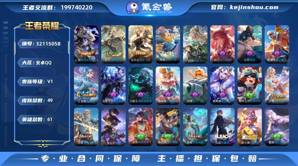 49皮肤1典藏2传说11史诗15限定 676紫星币 【典藏】 银白咏叹调 【传说】 神树通天 冠军飞将 【热门】冰冠公主 梁祝 织梦人 暗隐猎兽者 特工魅影 青蛇 玩趣恶龙 乘风破浪 天才门将 花好人间 克喵 女仆咖啡 水果甜心 贵族积分10-61英雄-营地ID:1772638539 PX_2486159
