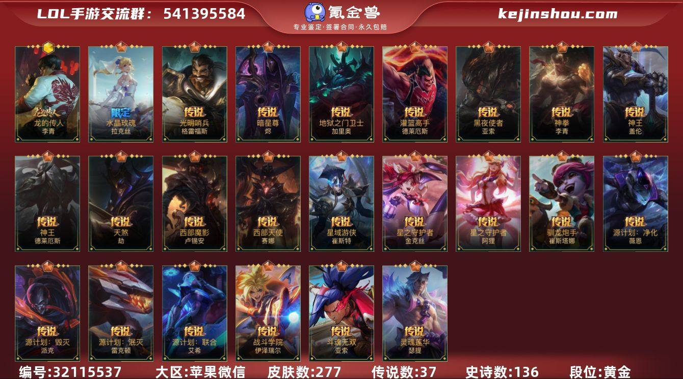 t36541【安卓QQ】英雄130 皮肤277 2神话/37传说/136史诗/ 华贵铂金Ⅳ 【游戏等级】201 【游戏区服】安卓QQ 【英雄数量】130 【皮肤数量】277 【游戏段位】华贵铂金Ⅳ【典藏皮肤】0 【神话皮肤】2 龙的传人李青 战斗学院白金学长伊泽瑞尔 【传说皮肤】37 真实伤害艾克 律政大亨蒙多医生 星之守护者阿卡丽 神龙尊者圣龙李青 御风墨影亚索 淳和墨意嘉文四世 暗星尊烬 地狱之门卫士加里奥 斗魂无双亚索 灌篮高手德莱厄斯 光电璀璨泽丽 光明哨兵格雷福斯 黑夜使者亚索 KDAALLOUT萨勒芬妮 黎明使者锐雯 黎明使者德莱文 灵魂莲华瑟提 神龙尊者驭风啸龙易 神拳李青 神王盖伦 神王德莱厄斯 水晶玫瑰拉克丝 太空律动猫猫布里和里茨布里茨 天煞劫 西部魔影卢锡安 西部天使赛娜 星域游侠崔斯特 星之守护者阿狸 星之守护者金克丝 星之守护者落霞 驯龙炮手崔丝塔娜 源计划毁灭派克 源计划净化薇恩 源计划联合艾希 源计划林易 源计划泯灭雷克顿 战斗学院伊泽瑞尔 【稀有回城特效】 【史诗皮肤】136 狂潮异想金克丝 双城之战天资金克丝 猎梦吞噬体卡兹克 永恒之森洛 小蜜蜂努努和威朗普 劲道美味阿木木 玉剑传说无影泰隆 神龙尊者均衡之龙沃利贝尔 神龙尊者炎龙瑟提 神龙尊者钢铁之龙锤石 电玩战魂赫卡里姆 涂鸦小队泽丽 温雅墨曲迦娜 秀逸墨羽霞 端劲墨印泰达米尔 黯晶巨鳄雷克顿 暗星墨菲特 暗星卡兹克 暗星奥莉安娜 霸天龙神奥瑞利安·索尔 霸天异形卡兹克 霸天战士雷恩加尔 霸天战鹰加里奥 白色死神韦鲁斯 冰川巨兽墨菲特 冰糖葫芦维迦 苍穹之光布兰德 持胡萝卜的雪人易 弹幕天使卡莎 地狱火加里奥 地狱行者孙悟空 电玩女神厄运小姐 电玩女神卡莎 电玩女神娑娜 电玩上校库奇 东恒之曜奥瑞利安·索尔 斗魂觉醒卡莉丝塔 福牛守护者菲奥娜 福牛守护者阿利斯塔 钢铁军团盖伦 光明哨兵锐雯 光明哨兵艾瑞莉娅 海之歌泽丽 寒冬精灵璐璐 烘...