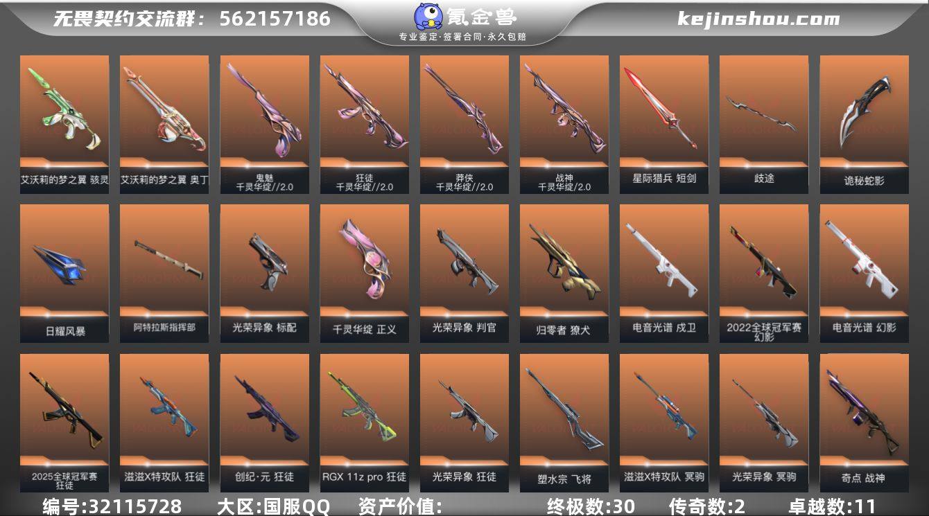 莲花2.0套装加显卡盖亚狂徒侦察幻影精品号 【套装】:千灵华绽//2.0套装,滋滋X特攻队套装,光荣异象套装,掠影//2.0套装 【英雄】:幻棱,炼狱,维斯,暮蝶,钛狐,壹决,铁臂,捷风,雷兹,幽影,不死鸟,贤者,猎枭,蝰蛇,零,芮娜,奇乐,尚勃勒,霓虹,斯凯,夜露,星礈,K/O,海神,盖可,黑梦,钢锁 【近战武器】:近战武器-流风回雪,近战武器-嘟昂嘟昂超弹力水球拳套,近战武器-影钩,近战武器-光荣异象 歧途,近战武器-镭切,近战武器-诡秘蛇影 军刀,近战武器-日耀风暴 遗器,近战武器-阿特拉斯指挥部 甩棍,近战武器-星际猎兵 短剑 【狂徒】:狂徒-2025全球冠军赛,狂徒-创·纪元,狂徒-RGX 11z Pro,狂徒-光荣异象,狂徒-滋滋X特攻队,狂徒-千灵华绽//2.0,狂徒-盖亚的复仇,狂徒-诡秘蛇影 【幻影】:幻影-2022全球冠军赛,幻影-电音光谱,幻影-侦察力量,幻影-异鳞魔蛇,幻影-神中神罚,幻影-掠影//2.0,幻影-末日之翼,幻影-电音光谱 【戍卫】:戍卫-电音光谱,戍卫-天界神兵,戍卫-折光棱晶,戍卫-电音光谱 【獠犬】:獠犬-归零者 【冥驹】:冥驹-光荣异象,冥驹-滋滋X特攻队 【飞将】:飞将-塑水宗,飞将-末日之翼 【莽侠】:莽侠-千灵华绽//2.0,莽侠-诡秘蛇影 【战神】:战神-奇点,战神-千灵华绽//2.0 【奥丁】:奥丁-艾沃莉的梦之翼,奥丁-掠影//2.0,奥丁-末日之翼 【判官】:判官-光荣异象,判官-诡秘蛇影 【雄鹿】:雄鹿-离子武器 【骇灵】:骇灵-艾沃莉的梦之翼,骇灵-掠影//2.0,骇灵-无限竞技 【蜂刺】:蜂刺-折光棱晶 【标配】:标配-光荣异象,标配-折光棱晶 【正义】:正义-千灵华绽 【鬼魅】:鬼魅-千灵华绽//2.0,鬼魅-耀鳞威龙,鬼魅-掠影//2.0,鬼魅-诡秘蛇影 【短炮】:短炮-末日之翼 【卡面】:树懒大作战 卡面,Clutch 卡面,无畏契约GO!第一卷:芮娜 卡面,无畏契约GO!第...