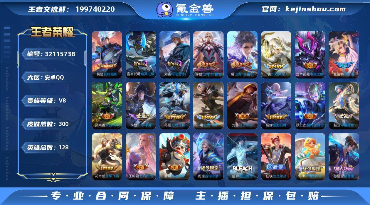 ·弑枪猎影·浮生妄·山海苍雷引·时之恋人·猫影幻舞·一念神魔·冠军飞将·无双飞将·山海炽霜斩·乞巧织情·炽阳神光·墨上江山天幕·可二次】w18131-安卓Q-128英雄-300皮肤-12王者印记-211铭文-贵族积分7w【贵族8】【1典藏·1珍品无双·2星传说·18传说·1天幕·5按键】【因赛季更新游戏段付以上号为准!】 【英雄全皮】:戈娅全皮,空空儿全皮 【荣耀典藏】:韩信弑枪猎影 【珍品无双】:貂蝉馥梦繁花 【星元皮肤】:宫本武藏幽冥之眼,刘备时之思念 【天幕】:墨上江山天幕 【传说皮肤】:桑启鸣野蒿,夏洛特浮生妄,曜山海苍雷引,李信山海炽霜斩,马超无双飞将,赵云淬星耀世,王昭君乞巧织情,镜炽阳神光,虞姬启明星使,曜云鹰飞将,李信一念神魔,刘备时之恋人,貂蝉猫影幻舞,花木兰冠军飞将,梦奇胖达荣荣,孙尚香末日机甲,宫本武藏地狱之眼,狄仁杰超时空战士 【限定皮肤】:大乔绒语心约,姜子牙天穹之誓,狄仁杰阴阳师,赵云皇家上将,赵云百木心枪,高渐离玩趣恶龙,阿轲迷踪丽影,钟无艳超时空战士,扁鹊奇幻香踪,吕布御风骁将,元歌云间偶戏,元歌无心,甄姬落雪兰心,马可波罗暗影游猎,马可波罗山海玄木吟,狄仁杰魔术师,狄仁杰万华元夜,达摩沙漠行僧,项羽海滩派对,老夫子醍醐杖,关羽冰锋战神,程咬金演武夺筹,刘邦夺宝奇兵,韩信傲雪梅枪,王昭君午后时光,兰陵王金庭之子,亚瑟潮玩骑士王,孙悟空至尊宝,后羿圣弓游侠,李元芳云中旅人,虞姬启明星使,钟馗驱傩正仪,杨戬潮玩骑兵,干将莫邪胡桃夹子,雅典娜黎明之约,蔡文姬繁星吟游,鬼谷子原初探秘者,鬼谷子五谷丰年,黄忠烈魂,苏烈玄武志,梦奇顽趣,沈梦溪大漠名商,明世隐疑决卦,裴擒虎天狼狩猎者,裴擒虎李小龙,裴擒虎擒涛扼浪,狂铁电玩高手,云中君纤云弄巧,李信山海炽霜斩,猪八戒西部大镖客,上官婉儿梁祝,嫦娥拒霜思,嫦娥暖冬兔...
