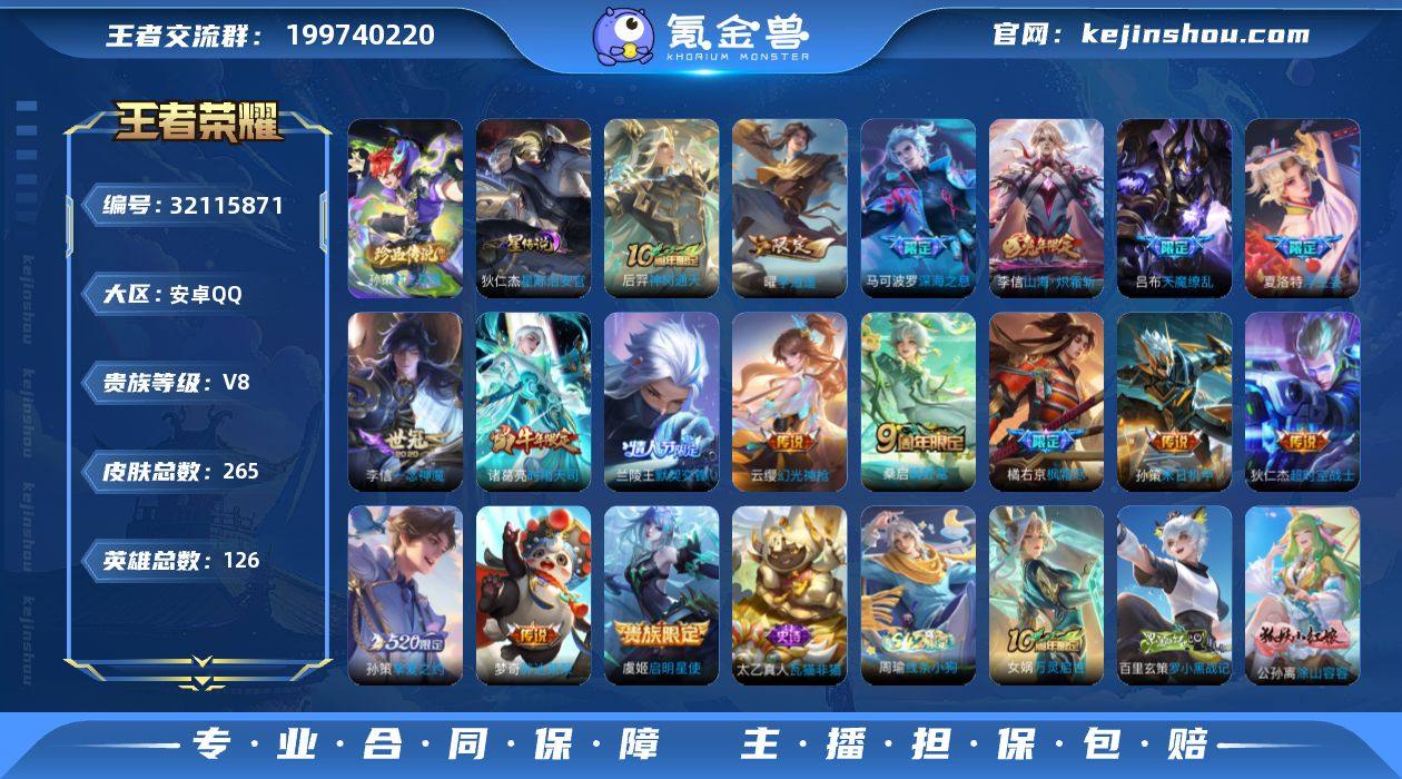【c4148】游走29段!李逍遥!马超神威!12按键!1小兵皮青铜!安卓Q-V8【特价出售,永久包赔】-尊贵铂金II段位-126英雄-265皮肤-1珍品传说-17传说-89史诗 【英雄全皮】:苏烈全皮,鲁班大师全皮,夏洛特全皮,金蝉全皮 【珍品传说】:孙策时之奇旅 【传说皮肤】:后羿神树通天,云缨幻光神枪,桑启鸣野蒿,夏洛特浮生妄,李信山海炽霜斩,橘右京枫霜尽,马可波罗深海之息,孙策挚爱之约,孙策末日机甲,曜李逍遥 ,兰陵王默契交锋,诸葛亮时雨天司,虞姬启明星使,李信一念神魔,梦奇胖达荣荣,吕布天魔缭乱,狄仁杰超时空战士 【限定皮肤】:蒙犽顽岩魄,姜子牙天穹之誓,杨戬破阵退雄兵,狄仁杰阴阳师,赵云皇家上将,赵云龙胆,庄周高山流水,高渐离死亡摇滚,高渐离玩趣恶龙,扁鹊奇幻香踪,白起夜都怪侠,吕布天魔缭乱,元歌无心,甄姬游园惊梦,马可波罗深海之息,狄仁杰魔术师,达摩沙漠行僧,项羽海滩派对,老夫子航海奇遇记,程咬金演武夺筹,王昭君午后时光,兰陵王默契交锋,兰陵王金庭之子,花木兰瑞麟志,橘右京枫霜尽,孙悟空孙行者,后羿圣弓游侠,张飞虎魄,李元芳云中旅人,虞姬启明星使,钟馗驱傩正仪,杨玉环遇见飞天,杨戬潮玩骑兵,干将莫邪真爱魔法,雅典娜黎明之约,太乙真人华丽摇滚,鬼谷子五谷丰年,诸葛亮时雨天司,黄忠烈魂,铠青龙志,苏烈玄武志,苏烈千军破阵,百里玄策原初追逐者,百里守约朱雀志,梦奇顽趣,沈梦溪大漠名商,明世隐吟游魔法,裴擒虎天狼狩猎者,裴擒虎擒涛扼浪,狂铁电玩高手,云中君纤云弄巧,云中君时之祈愿,李信山海炽霜斩,盾山梦圆繁星,孙策挚爱之约,猪八戒猪悟能,嫦娥拒霜思,曜李逍遥 ,鲁班大师匿光启智者,鲁班大师探海日志,桑启海盐诗旅,夏洛特浮生妄,金蝉唐三藏,阿古朵江河有灵,张良古海寻踪,蒙恬荣光圣徽,鬼谷子天穹祈灯,姬小满妄想食...