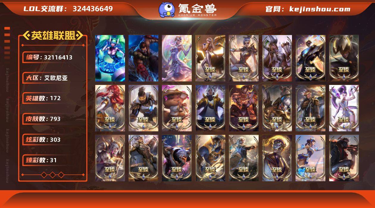 t37358【艾欧尼亚】三色龙瞎 793皮肤 303炫彩 31臻彩 48神话/148限定/62传说/172英雄 账号等级:1133 云顶神话:1 单双排段位:大师 【重要头像】至爱的鹿 爱意绵绵 爱情之歌 心型钥匙 觅心之翼奎因 雪花 银河魔装机神安妮 泳池派对凯特琳 救生圈 KDA萨勒芬妮 EDG厄斐琉斯 EDG佛耶戈 EDG格雷福斯 EDG悠米 EDG佐伊 魄罗宇航员 魔女卡西奥佩娅炫彩 战斗学院卡特琳娜炫彩 青花瓷丽桑卓炫彩 青花瓷丽桑卓 烈焰美人薇恩炫彩 披萨鸡 送披萨的小姐姐希维尔 神龙烈焰金克丝炫彩 圣诞捣蛋鬼金克丝 至臻青花瓷拉克丝 至臻女帝黛安娜 至臻KDA卡莎 至臻灵魂莲华提莫 水晶圣骑艾希炫彩头 水晶圣骑艾希头 【重要皮肤】花仙使者卡特琳娜至臻 西部魔影猎天使恶魔泰隆至臻 青花瓷拉克丝至臻 女帝黛安娜至臻 未来战士卢锡安至臻 真实伤害亚索至臻 灵魂莲华提莫至臻 灵能特工伊泽瑞尔至臻 源计划逆流塞拉斯至臻 源计划阴劫至臻 神龙尊者炎龙瑟提至臻 黑夜使者凯隐至臻 飞升战神潘森至臻 焰执事布兰德至臻 KDA二代卡莎至臻 KDA一代卡莎至臻 KDA卡莎2022至臻 战斗学院拉克丝至臻 战斗学院拉克丝2022至臻 烈焰美人薇恩至臻 烈焰美人薇恩2022至臻 魅惑女巫厄运小姐至臻 玉剑传说武剑仙至臻 玉剑传说武剑仙2022至臻 未来战士锤石至臻 未来战士锤石2022至臻 黑夜使者李青至臻 黑夜使者李青2022至臻 灰烬骑士派克 灰烬杀手塞拉斯 海克斯科技安妮 海克斯科技瑟庄妮 海克斯科技雷克顿 海克斯科技克格莫 海克斯科技吉格斯 海克斯科技玛尔扎哈 海克斯科技嘉文四世 海克斯科技阿利斯塔 新卧虎藏龙贾克斯 水晶圣骑艾希 永恒之森奥恩 黎明使者卡尔玛 零之枪骑赫卡里姆 摄魂使者薇恩 新创战纪希维尔 胜利女神娑娜 胜利巨口克格莫 创星之灵璐璐 奥斯曼大帝普朗克 安...