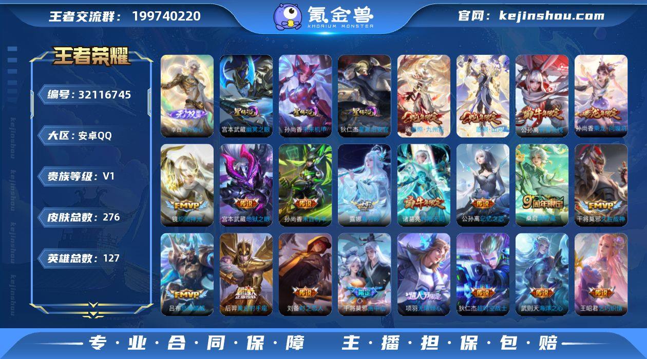 安卓Q-V0-至尊星耀IV段位-127英雄-276皮肤-1典藏英雄-1无双-24传说-65史诗【荣耀典藏】:武则天英雄【无双皮肤】:李白碎月剑心【传说皮肤】:司空震愿照山河定,澜愿照九州拓,桑启鸣野蒿,孙尚香乘龙问璇玑,露娜霜月吟,公孙离记忆之芯,干将莫邪画中仙,项羽无限倾心,吕布怒海麟威,王昭君乞巧织情,公孙离祈雪灵祝,诸葛亮时雨天司,铠绛天战甲,镜炽阳神光,虞姬启明星使,刘备时之恋人,张良黄金白羊座,干将莫邪久胜战神,后羿黄金射手座,孙尚香末日机甲,宫本武藏地狱之眼,孙悟空地狱火,武则天海洋之心,狄仁杰超时空战士【限定皮肤】:白起狰,姜子牙天穹之誓,狄仁杰阴阳师,虞姬凯尔特女王,赵云皇家上将,孙尚香蔷薇恋人,庄周蜃楼王,高渐离死亡摇滚,孙膑妖精王,扁鹊炼金王,芈月重明,吕布御风骁将,夏侯惇朔风刀,甄姬游园惊梦,曹操烛龙,典韦穷奇,马可波罗暗影游猎,马可波罗山海玄木吟,狄仁杰魔术师,狄仁杰万华元夜,达摩沙漠行僧,项羽海滩派对,项羽无限倾心,老夫子圣诞老人,老夫子醍醐杖,程咬金演武夺筹,韩信逐梦之影,兰陵王金庭之子,亚瑟狮心王,孙悟空美猴王,孙悟空孙行者,牛魔御旌,李元芳云中旅人,虞姬启明星使,钟馗驱傩正仪,杨玉环遇见飞天,干将莫邪胡桃夹子,干将莫邪画中仙,雅典娜黎明之约,太乙真人饕餮,鬼谷子原初探秘者,鬼谷子五谷丰年,诸葛亮时雨天司,苏烈千军破阵,百里玄策原初追逐者,弈星混沌棋,梦奇顽趣,公孙离祈雪灵祝,沈梦溪大漠名商,明世隐疑决卦,裴擒虎李小龙,裴擒虎擒涛扼浪,狂铁御狮,米莱狄御霄,盾山御銮,猪八戒猪悟能,上官婉儿梁祝,嫦娥暖冬兔眠,鲁班大师探海日志,桑启海盐诗旅,暃星界游侠,阿古朵江河有灵,张良古海寻踪,蒙恬荣光圣徽,鬼谷子天穹祈灯,李白碎月剑心,孙尚香乘龙问璇玑,沈梦溪龙舞盛年,刘邦剑破天穹...