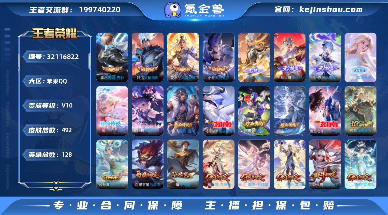 【AZW147】苹果Q-V10-最强王者段位-128英雄-492皮肤-4典藏皮肤-4无双-7珍品传说-68传说-152史诗 【英雄全皮】:廉颇全皮,嬴政全皮,姜子牙全皮,刘邦全皮,孙权全皮,不知火舞全皮,娜可露露全皮,张飞全皮,狂铁全皮,米莱狄全皮,敖隐全皮,夏洛特全皮,空空儿全皮,影全皮 【荣耀典藏】:小乔天鹅之梦,李白鸣剑曳影,花木兰九霄神辉,韩信弑枪猎影 【无双皮肤】:曜器灵螭龙剑,甄姬雪境奇遇,不知火舞花合斗,小乔时之魔女 【珍品传说】:安琪拉酷洛米之心,瑶大耳狗之梦,张飞兔狲蓬尾,嫦娥器灵落星盏,孙策时之奇旅,鲁班七号江户川柯南,马可波罗怪盗基德 【传说皮肤】:后羿神树通天,公孙离云诺千山,西施续相思,杨玉环星之鸣奏,后羿千劫归真,司空震愿照山河定,女娲愿照千秋盛,妲己愿照众生和,澜愿照九州拓,蔡文姬愿照福禄聚,虞姬愿照岁时盈,云缨幻光神枪,裴擒虎祥瑞亨通,嬴政玄雷天君,王昭君映山客,桑启鸣野蒿,庄周牧神诗旅,艾琳觅芳踪,孙膑小动物乐团,兰陵王影龙天霄,上官婉儿妄想奇谈,东皇太一灼幽烈阳,张飞百相守梦,夏洛特浮生妄,小乔山海琳琅生,曜山海苍雷引,李信山海炽霜斩,吕布怒海麟威,李白诗剑行,不知火舞绯月行,娜可露露前尘镜,孙尚香音你闪耀,马可波罗深海之息,马超无双飞将,孙策挚爱之约,露娜启示之音,蔡文姬花朝如约,女娲补天,孙策末日机甲,瑶时之祈愿,裴擒虎寅虎赤拳,鲁班七号寅虎瑞焰,孙尚香异界灵契,貂蝉遇见胡旋,赵云淬星耀世,王昭君乞巧织情,西施游龙清影,曜李逍遥 ,周瑜音你心动,公孙离祈雪灵祝,诸葛亮时雨天司,铠绛天战甲,镜炽阳神光,虞姬启明星使,李信一念神魔,张良黄金白羊座,干将莫邪久胜战神,达摩黄金狮子座,百里玄策白虎志,花木兰冠军飞将,梦奇胖达荣荣,杨戬永曜之星,诸葛亮武陵仙君,李白凤求凰,孙尚香末日...
