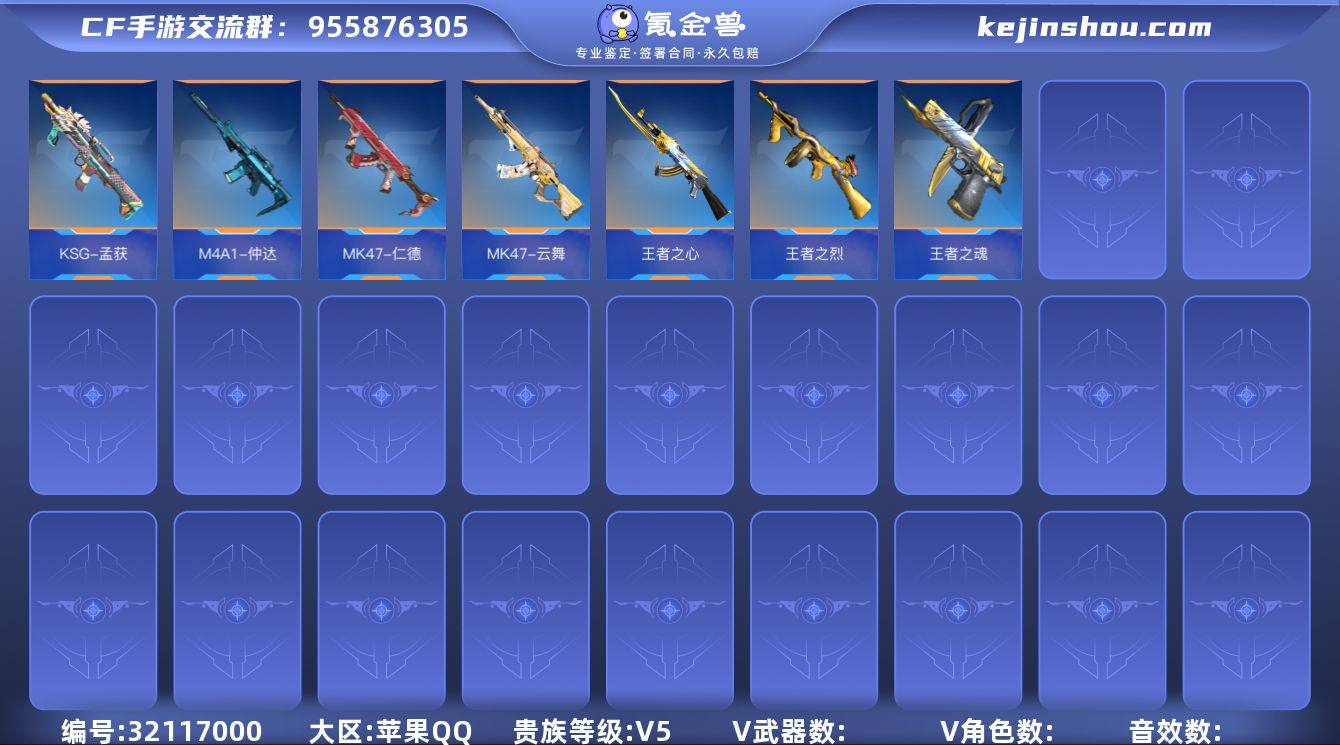 ABC11192/苹果QQ/贵5/暂不可转区/钱包已注销/可二次/不重复v224/10王者武器/仁德套/仲达/烽火连城/威侯/屈魔/AN94盖/孟获/王者之影/王者之心/王者之尊/王者之盘/王者之烈/云舞/鼓龙套/白昼/王者之魂/王者之业/【角色】/蔡文昭/零水下丽影/关小雨/零新生/炽天使X/瞳/步练师/黑武士套/毁灭套/冰锋套/幻神套/机械迷城套/血月套/诗仙套/卧龙套