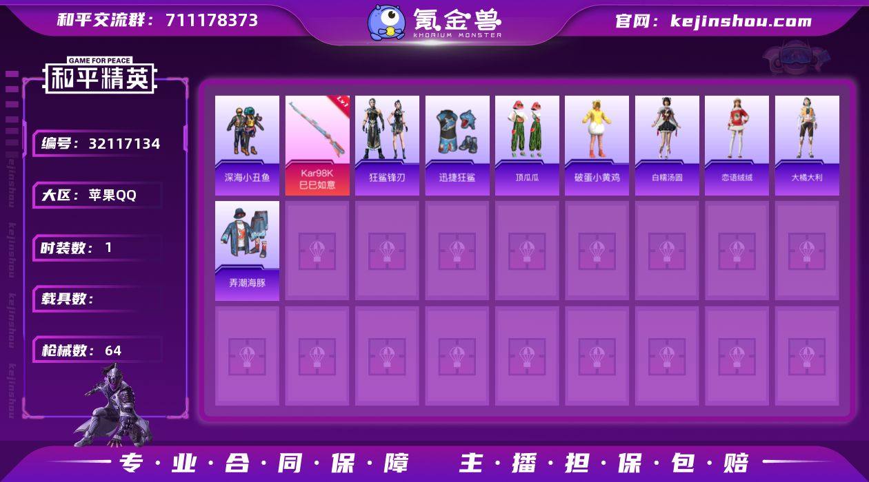 M1046716【地铁满天赋1粉装-3特效枪 深海小丑鱼 鲨鱼裤】苹果手Q-1粉装-3特效枪-45套装-58枪皮-4王牌印记-超级王牌4星-15754热力值【1粉装】角色-冷漠罗丽【3特效枪】Mk14-福马献瑞[5级] UMP45-萌骑冒险[4级] Kar98K-巳巳如意[5级]【1稀有】深海小丑鱼【3飞行器】登顶巅峰飞行器 马上有福飞行器 异域银装飞行器【104其它衣服和枪皮】竞技名士 青翼流星 画境星梦 SS35特训 书海巡游 深蓝色名流 迅捷狂鲨 SS37特训 白糯汤圆 狙击之神 旭日情侣 雪国风尚 灼焰舞者 SS31特训 SS34特训 破蛋小黄鸡 顶瓜瓜 福马献瑞 弄潮海豚 马上有钱 战术大师 黄色运动 街头潮人 玲珑侠影 绮丽涂鸦 雨过天青 星渊小夜曲 滨海厨神 魅力单车 红釉青花 柠萌假日 SS36特训 SS32特训 恋语绒绒 光之冒险 SS33特训 大橘大利 街头风暴 黑色伏地魔 超能勇士 琴音绮想 云魄琉璃 狂鲨锋刃 M16A4-雨过天青 烟雾弹-冰氧夏日 汤姆逊-耀粉歌者 AUG-异域银装 Kar98K-红色方程式 UMP45-海盐豹豹 DBS-彩虹符号 P90-紫矿核心 Mk14-阳光菠萝 S1897-糯团青竹 AUG-月影灵韵 Mini14-穿刺龙虾 蜜獾-启元战纹 SPAS-12-狂鲨锋刃 ACE32-画境星梦 M24-影袭 SCAR-L-炫彩节奏 AA12-G-雨过天青 Vector-生命誓言 PKM-雨过天青 M762-天降萌叽 MP5K-画境星梦 燃烧瓶-福马献瑞 AMR-雨过天青 R45-幻彩电音 UZI-红色方程式 AKM-霓彩脉冲 撬棍-冰晶雪宝 GROZA-福马献瑞 S12K-破晓战魂 ACE32-冰晶雪宝 20-H-狂鲨锋刃 P90-巳巳如意 M16A4-蓝色火焰 MG3-幻世战舞者 十字弩-异瞳寒姬 沙漠之鹰-雨过天青 M1加兰德-画境星梦 UMP45-蓝色火焰 破片手榴弹-海盐豹豹 破片手榴弹-爆破雪人 AKM-破晓战魂 SKS-炫彩节奏 AA12-G-画境星梦 M416-红色方程式 M16A4-红色方程式