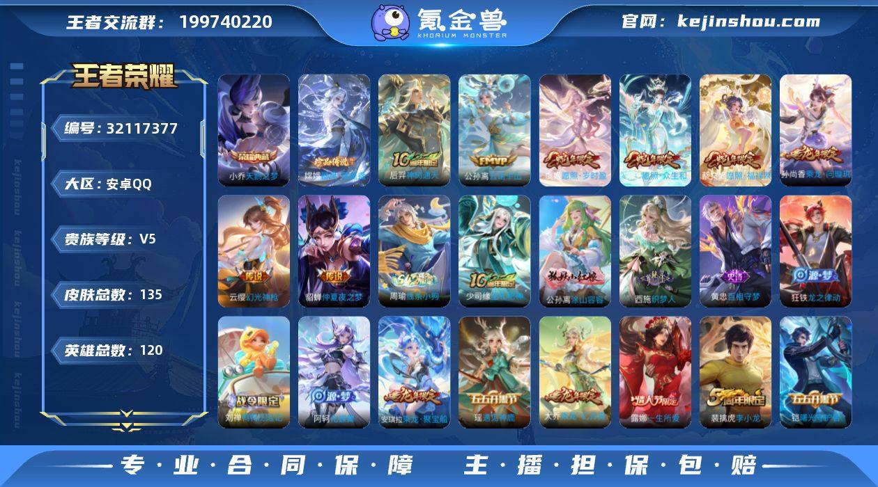 不可二次 女生号 安卓Q-V5-永恒钻石III段位-120英雄-135皮肤-1典藏皮肤-1珍品传说-8传说-36史诗 QW263606 【英雄全皮】:影全皮 【荣耀典藏】:小乔天鹅之梦 【珍品传说】:嫦娥器灵落星盏 【传说皮肤】:后羿神树通天,公孙离云诺千山,妲己愿照众生和,蔡文姬愿照福禄聚,虞姬愿照岁时盈,云缨幻光神枪,孙尚香乘龙问璇玑,貂蝉仲夏夜之梦 【限定皮肤】:狄仁杰阴阳师,赵云皇家上将,庄周高山流水,狄仁杰魔术师,狄仁杰万华元夜,达摩星际陆战队,达摩沙漠行僧,项羽海滩派对,程咬金演武夺筹,露娜一生所爱,钟馗驱傩正仪,鬼谷子原初探秘者,弈星混沌棋,明世隐疑决卦,裴擒虎李小龙,云中君纤云弄巧,嫦娥拒霜思,蒙犽百解令,鬼谷子天穹祈灯,大乔乘龙忆丹青,安琪拉乘龙聚宝船,孙尚香乘龙问璇玑 【年限皮肤】:孙尚香乘龙问璇玑,大乔乘龙忆丹青,安琪拉乘龙聚宝船,妲己愿照众生和,蔡文姬愿照福禄聚,虞姬愿照岁时盈 【赛季限定】:弈星混沌棋,明世隐疑决卦,鬼谷子原初探秘者,狄仁杰万华元夜,程咬金演武夺筹,钟馗驱傩正仪,达摩沙漠行僧,鬼谷子天穹祈灯,太乙真人谧流熔炉,钟馗虚灵犬护,甄姬逆浪荇歌,亚瑟荣光之誓 【战令限定】:达摩星际陆战队,孙膑茶境仙,马超访茗客,刘禅鸭鸭历险记,沈梦溪鸭鸭历险记,周瑜线条小狗 【史诗皮肤】:周瑜线条小狗,少司缘巫礼祀神,公孙离涂山容容,西施织梦人,黄忠百相守梦,狂铁龙之律动,刘禅鸭鸭历险记,阿轲化蝶舞,芈月瑰影绮梦,弈星万物之道,孙膑茶境仙,大乔乘龙忆丹青,安琪拉乘龙聚宝船,蒙犽百解令,貂蝉唤灵魅影,嫦娥拒霜思,庄周高山流水,云中君纤云弄巧,裴擒虎李小龙,瑶遇见神鹿,小乔青蛇,狄仁杰鹰眼统帅,露娜一生所爱,阿轲节奏热浪,白起星夜王子,李元芳逐浪之夏,铠曙光守护者,百里守约特工魅影,张飞乱世虎臣,刘禅绅士...