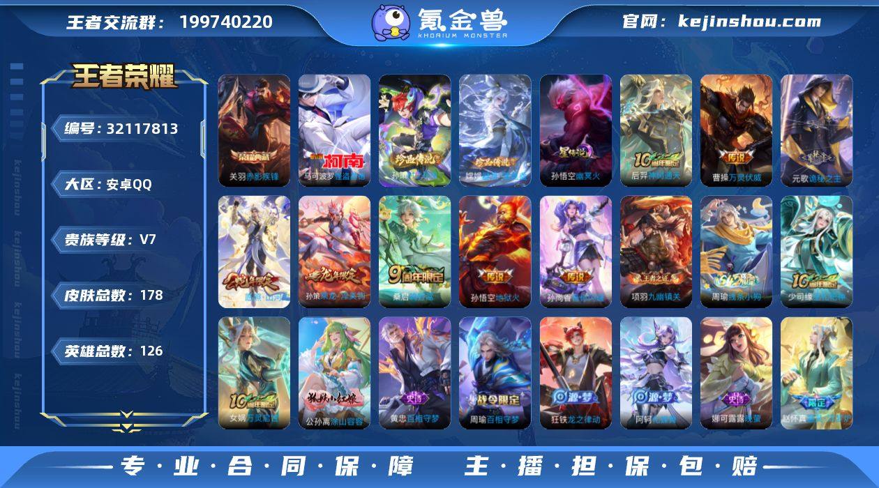 【秒换绑】安卓Q-V7-【1w金标赵怀真,元歌】至尊星耀II段位-126英雄-178皮肤-1典藏皮肤-3珍品传说-8传说-51史诗 【英雄全皮】:孙权全皮,戈娅全皮,影全皮 【荣耀典藏】:关羽赤影疾锋 【珍品传说】:嫦娥器灵落星盏,孙策时之奇旅,马可波罗怪盗基德 【传说皮肤】:后羿神树通天,曹操万灵伏威,元歌诡秘之主,司空震愿照山河定,桑启鸣野蒿,孙策乘龙淬吴钩,孙尚香音你闪耀,孙悟空地狱火 【限定皮肤】:蒙犽顽岩魄,大乔绒语心约,姜子牙天穹之誓,狄仁杰阴阳师,赵云皇家上将,狄仁杰魔术师,项羽海滩派对,雅典娜黎明之约,百里玄策原初追逐者,西施玲珑珍味,鲁班大师探海日志,戈娅驭风魔法,张良古海寻踪,蒙恬荣光圣徽,高渐离燃音魔法,妲己灵卜魔法,鬼谷子天穹祈灯,孙策乘龙淬吴钩,沈梦溪龙舞盛年,刘邦剑破天穹,程咬金群星魔术团,周瑜熔金海岸 【年限皮肤】:孙策乘龙淬吴钩,司空震愿照山河定 【赛季限定】:鲁班大师探海日志,张良古海寻踪,鬼谷子天穹祈灯,刘邦剑破天穹,姜子牙天穹之誓,东皇太一噬灭天穹,太乙真人谧流熔炉,钟馗虚灵犬护,甄姬逆浪荇歌,亚瑟荣光之誓,百里玄策原初追逐者,雅典娜黎明之约,蒙恬荣光圣徽,牛魔星界战将,项羽九幽镇关 【战令限定】:戈娅驭风魔法,西施玲珑珍味,高渐离燃音魔法,妲己灵卜魔法,百里守约百相守梦,老夫子百相守梦,周瑜百相守梦,孙策百相守梦,周瑜线条小狗 【史诗皮肤】:周瑜线条小狗,项羽九幽镇关,少司缘巫礼祀神,女娲万灵启世,公孙离涂山容容,黄忠百相守梦,周瑜百相守梦,狂铁龙之律动,阿轲化蝶舞,芈月瑰影绮梦,赵怀真器灵浮梦炉,弈星万物之道,姬小满飞车小橘子,牛魔星界战将,百里守约百相守梦,蒙犽顽岩魄,蒙恬荣光圣徽,高渐离燃音魔法,妲己灵卜魔法,戈娅驭风魔法,雅典娜黎明之约,司马懿暗渊魔法,沈梦溪月...