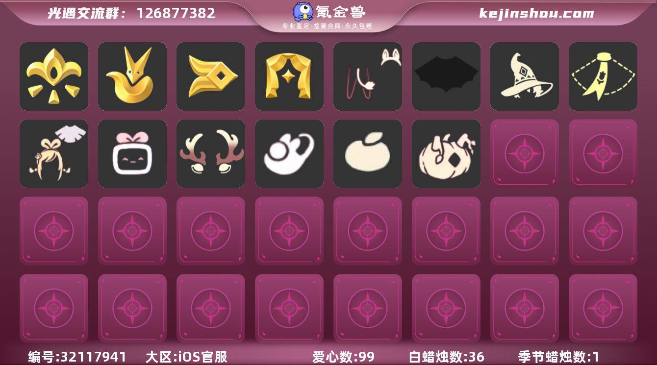 【A1019】区服:国服ios,换绑时间:4.5,登入方式:手机【6季卡】白枭鹿角巫师帽绊爱蝙蝠斗王子围巾红伞盘龙围巾大铁头,蜡烛数量:36,爱心:99,当前身高0.975,最高身高0.867,最矮身高12.867,已经毕业地图:霞谷,暮土,已经毕业季节:表演季,风行季,王子季,集结季,稀有礼包:彩虹武士裤,玉兔拖鞋,跃动跑鞋,金鳞耳坠,圣诞鹿角,姆明饰品套装,巫师帽,南瓜头,绊爱套装,玉兔,大桔大利,小王子围巾,蝙蝠斗篷,盘龙围巾斗篷,祥云瑞气纸伞,狐狸背包,中国绊爱大铁头,热门物品:正太头,樱花头,猫猫头,搓澡巾,武士裤,白棉裤,背带裤,花环头饰,宴会围巾,虚荣发型,黄鼠狼面具,红狐狸面具,花瓣斗篷,灯泡斗篷,白金斗篷,吉他,高音钢琴