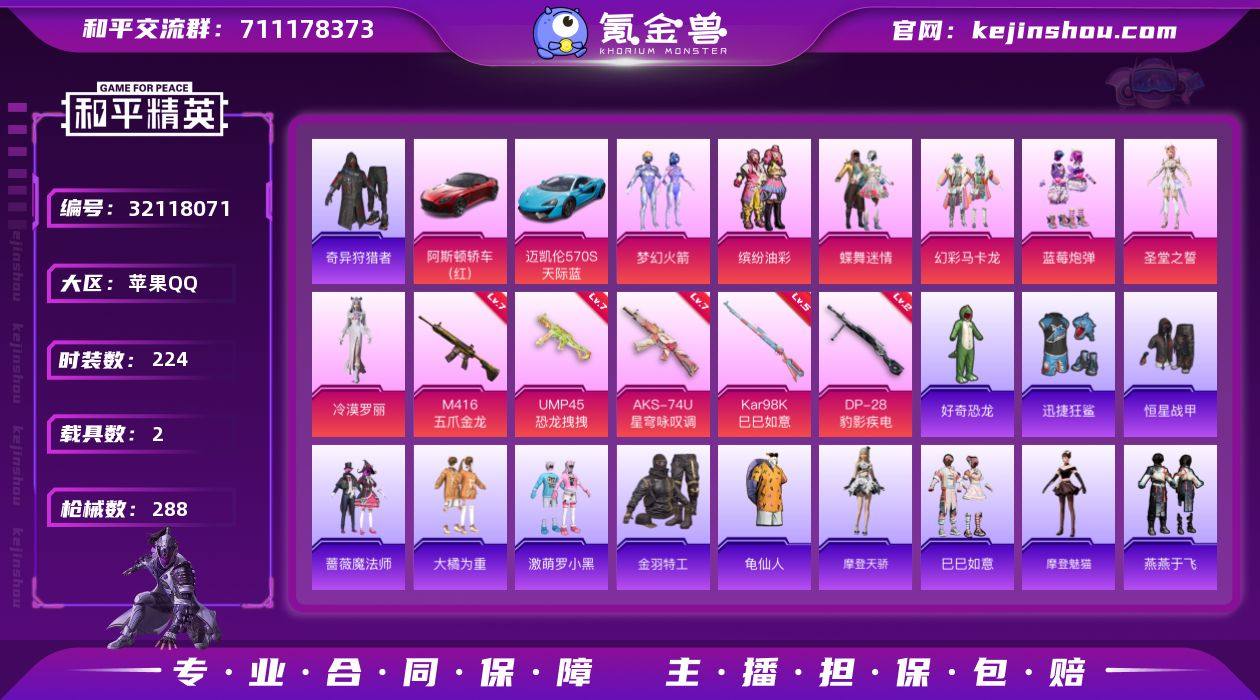 苹果【男神号 粉装-梦幻火箭/粉装-缤纷油彩/套装-金羽特工/套装-SS1特训/M416-五爪金龙(七级)/AKS-74U-星穹咏叹调(七级)/阿斯顿马丁DBS(红)/迈凯伦570S(天际蓝)】 手Q-7粉装-5特效枪-2载具-1粉色飞行器-91626热力值-24王牌印记-224套装-288枪皮 【热门品类】:粉装-梦幻火箭,粉装-缤纷油彩,套装-奇异狩猎者,套装-金羽特工,套装-SS1特训,套装-龟仙人 【粉色套装】:粉装-蝶舞迷情,粉装-梦幻火箭,粉装-缤纷油彩,粉装-幻彩马卡龙,粉装-蓝莓炮弹,角色-圣堂之誓,角色-冷漠罗丽 【粉色枪皮等级】:M416-五爪金龙(七级),UMP45-恐龙拽拽(七级),AKS-74U-星穹咏叹调(七级),Kar98K-巳巳如意(五级),DP-28-豹影疾电(二级) 【粉色载具】:阿斯顿马丁DBS(红),迈凯伦570S(天际蓝) 【粉色枪皮】:M416-五爪金龙,UMP45-恐龙拽拽,AKS-74U-星穹咏叹调,Kar98K-巳巳如意,DP-28-豹影疾电 【粉色飞行器】:梦幻火箭飞行器 【粉色降落伞】:幻影战神降落伞,至尊龙雀降落伞,春暖花开降落伞,PEL轰鸣竞梦者降落伞,神秘黑猫降落伞,古堡领主降落伞,洛神天依降落伞,恐龙拽拽降落伞,环太平洋降落伞,海螺星光降落伞,第五大道降落伞,飒粉甜心降落伞,樱桃泡泡降落伞,星穹咏叹调降落伞,冷漠罗丽降落伞 【稀有套装】:套装-龟仙人,套装-摩登天骄,套装-巳巳如意,角色-摩登魅猫,套装-燕燕于飞,套装-鱼渊荷华,套装-霓虹热舞,套装-雪绒豹 【稀有枪皮】:AKM-冰凉西瓜,AKM-夜灯,AKM-奇异狩猎者,AKM-彩虹符号,AKM-恐龙拽拽,AKM-灼热熔岩,AKM-生命誓言,AKM-破晓战魂,AKM-萌趣颜团子,AKM-虎虎生威,AKM-阿狸红,AKM-霓虹街区,M16A4-机械英豪,M16A4-生命誓言,M16A4-红色方程式,SCAR-L-凝视深渊,SCAR-L-炫彩节奏,SCAR-L-繁花小夜曲,SCAR-L-红色方程式,SCAR-L-雷霆特警,SCAR-L-黄金龙骨,M416-...
