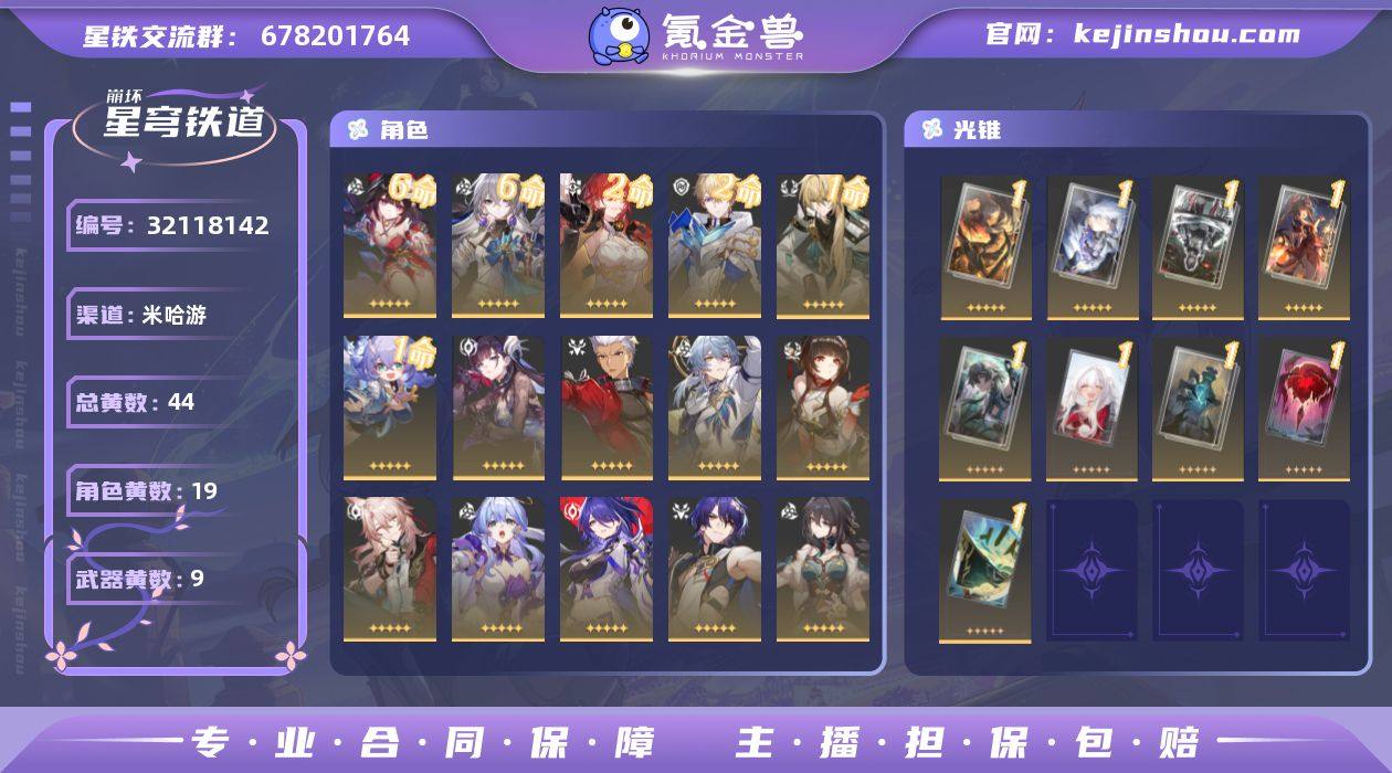 0AE0GB总黄数44角色数量18武器数量8冒险等级 【满命5星角色2个】6命花火,6命布洛妮娅, 【二命5星角色2个】2命姬子,2命杰帕德, 【一命5星角色2个】1命罗刹,1命白露, 【5星角色12个】0命星期日,0命灵砂,0命椒丘,0命黄泉,0命知更鸟,0命真理医生,0命阮•梅,0命丹恒•饮月,0命彦卿,0命瓦尔特,0命银狼,0命Archer, 【1精武器8个】精1回到大地的飞行,精1行于流逝的岸,精1游戏尘寰,精1孤独的疗愈,精1无可取代的东西,精1比阳光更明亮的,精1星海巡航,精1记一位星神的陨落
