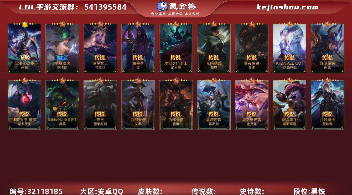 2神话 1限定 24传说 81史诗 163皮肤 可二次 可修改实名 【段位】翡翠 【神话皮】夜星流火 金克丝,至臻心之钢永恩 【限定皮肤】水晶玫瑰阿卡丽 【传说皮】暗星尊,海魔至尊 亚托克斯,幻灵特战队长 菲奥娜,双城之战:殊途 杰斯,翩翩绣蕊 霞,地狱之门卫士,水晶玫瑰阿卡丽,西部天使赛娜,西部天使寒冰,神王诺手,星之守护者金克丝,欧米伽小队 幽灵特工,律政大亨,K/DA ALLOUT萨勒芬妮,黑夜使者亚索,光明哨兵薇恩,星域游侠卡牌,暗星女王拉克丝,黎明使者永恩,战斗学院ez,月蚀骑士蕾欧娜,源计划:联合,源计划:净化,驯龙炮手