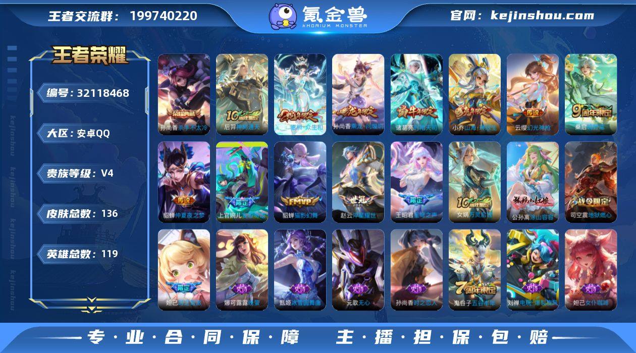 19122|【可实名】精品脱坑典藏多传说号 可二次 低价出 安卓QQ 136皮 贵族4级 1典藏 12传说 44史诗【荣耀典藏】杀手不太冷【传说皮肤】神树通天,妄想奇谈,幻光神枪,愿照·众生和,乘龙·问璇玑,山海·琳琅生,鸣野蒿,星穹之声,时雨天司,仲夏夜之梦安卓QQ 136皮 贵族4级 1典藏 12传说 44史诗【荣耀典藏】杀手不太冷【传说皮肤】神树通天,妄想奇谈,幻光神枪,愿照·众生和,乘龙·问璇玑,山海·琳琅生,鸣野蒿,星穹之声,时雨天司,仲夏夜之梦,猫影幻舞,淬星耀世【史诗皮肤】涂山容容,万灵启世,无心,暗隐猎兽者,天才门将,电玩·爆裂旋风,地狱燃心,圣诞狂欢,末日机甲,金属风暴,魅力维加斯,时之奇旅,女仆咖啡,晚萤,摇滚巨星,优雅恋人,暗夜贵公子,时之恋人,水果甜心,心灵骇客,鬼剑武藏,缤纷独角兽,奇幻香踪,逐浪之夏,鹰眼统帅,魔术师,偶像歌手,冰雪圆舞曲,特工魅影,百相守梦,荣光圣徽,舞动绿茵,逐梦之音,圣诞恋歌,唤灵魅影,未来纪元,皇家上将,超时空战士,江河有灵,节奏热浪,迷踪丽影,冰冠公主,五谷丰年,火炮绅士【勇者皮肤】荣光之誓,罗小黑战记,鹤鸣心笺,噬灭天穹,幻夜行动,金庭之子,黄金武士,铁骨偃魂,浪漫序章,万事如意,纽约教父,唤灵魔甲,剑破天穹,阿尔法小队,野性能量,熔金海岸,暗都幽影,谧流熔炉,少女阿狸,天穹之誓,沉稳之力,玩偶对对碰,万象初新,丁香结,雾都夜雨,古海寻踪,缤纷绘卷,化身博士,虹云星官,云中旅人,潮玩骑兵,海盐诗旅,东方不败,鲨炮海盗猫,幻泉雾影,时空谍影,万华元夜,幻想奇妙夜,花好人间,落雪兰心,白色死神,敬我三分,功夫老勺,百相守梦,流音漫舞,幻夜卜梦,红桃皇后,兔女郎,苍林狼骑,坚韧之力,千军破阵,蔚蓝守将,擒涛扼浪,雪境奇遇,忍·炎影,沙漠行僧,拳王,爱心护理,哥特玫瑰,街头霸王,教廷特使,海滩派对,天穹祈灯,探海日志,乓乓大师【其他皮肤】赤焰之缨,隐刃,精灵王,海军大将,万圣前夜,碧珀绯影,画中游,年年有余,...