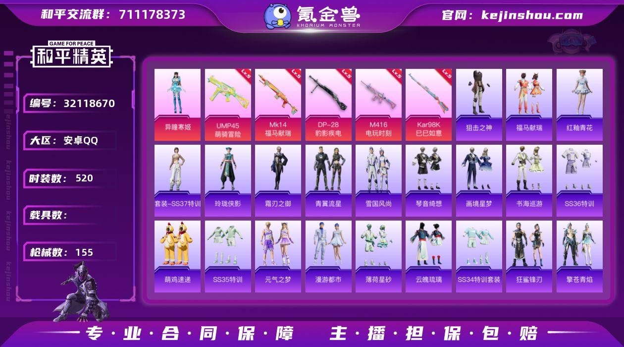 LGH571【稀有暗夜之虎5特1粉1飞行器地铁号异瞳寒姬游乐M416-电玩时刻5级素材号】(可二次实名) 安卓Q-1粉装5特效枪7热门127套装155枪皮 40445热力值 12印记 历史超级王牌11星 【1粉装】 异瞳寒姬 【5特效枪】 M416-电玩时刻 (5级) Kar98K-巳巳如意 (5级) DP-28-豹影疾电 (5级) Mk14-福马献瑞 (5级) UMP45-萌骑冒险 (5级) 【7热门】 龟仙人 暗夜之虎 鹰眼刺客 暗夜之虎 漫步者 破蛋小黄鸡 极速红龙 营地ID:969059719 送王者 V2 85皮 1星元 5传说 幽冥之眼 地狱火 地狱之眼