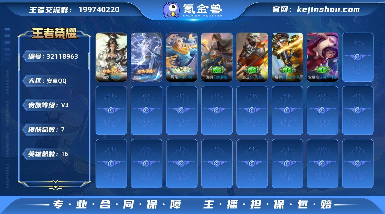 【精品小号推荐·器灵落星盏·沧流箭·可二次】YXw18036-安卓Q-16英雄-7皮肤-0王者印记-4铭文-贵族积分0w【贵族3】【2珍品】【因赛季更新游戏段付以上号为准!】 【珍品传说】:伽罗沧流箭,嫦娥器灵落星盏 【战令限定】:周瑜线条小狗 【史诗皮肤】:周瑜线条小狗 【其他皮肤】:海月幻泉雾影,后羿阿尔法小队,安琪拉玩偶对对碰,赵云忍炎影 【营地ID】:1547259799